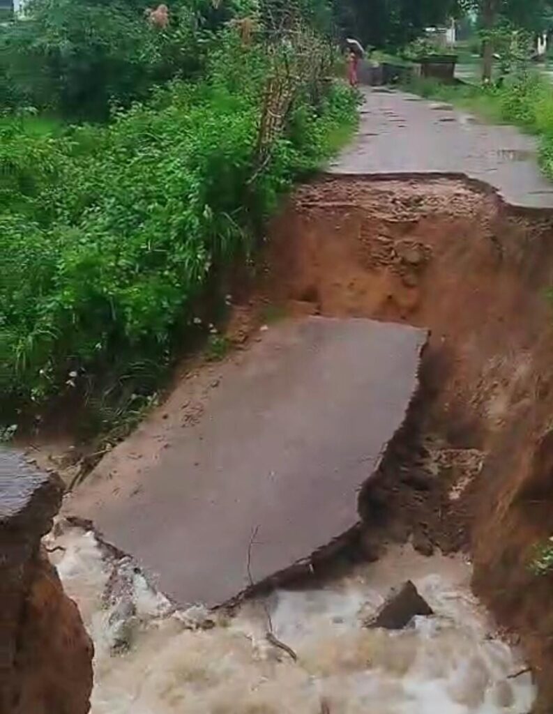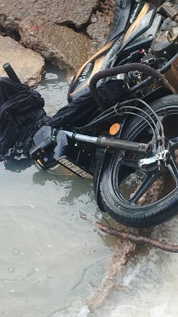 दादर में तालाब का मेड़ टूटा, आवागमन हुआ बाधित, बाइक चालक हुआ हादसे का शिकार