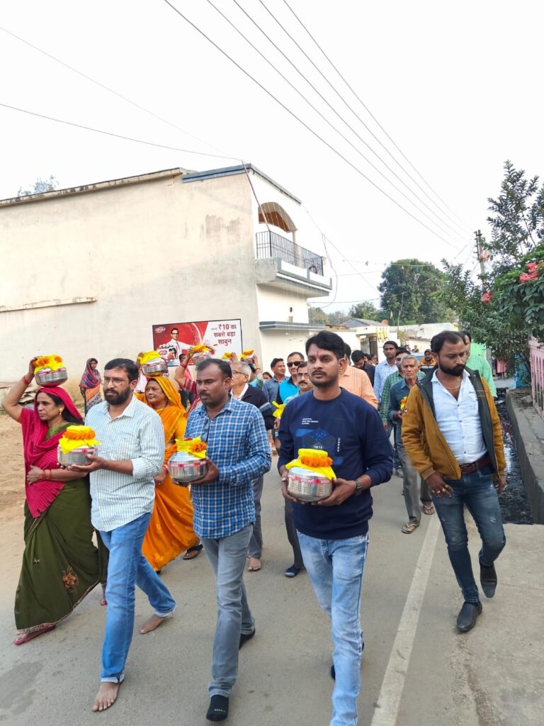 कोरबा (खटपट न्यूज)। अयोध्या में भगवान राम के भव्य मंदिर का निर्माण अंतिम चरण में है। 22 जनवरी को भगवान की मूर्ति की प्राण प्रतिष्ठा प्रधानमंत्री नरेंद्र मोदी के हाथों होगी। इस तारतम्य में सम्पूर्ण समाज को एकजुट करने और दिव्य प्राण प्रतिष्ठा में शामिल होने सहित मंदिर दर्शन के लिए जन मानस को न्योता देने के उद्देश्य से अयोध्या से पूजित अक्षत कलश देश में चारों दिशाओं में भेजे गए हैं। कलश के विगत दिनों कोरबा जिला मुख्यालय पहुंचने के बाद जिले के विभिन्न ग्रामीण और शहरी क्षेत्रों में अक्षत कलश भेजे जा रहे हंै। यह कलश पाली पहुंचने पर आतिशबाजी और ढोल नगाड़े के साथ स्वागत किया गया। पूजा-अर्चना कर 2 दिवस के लिए दर्शन हेतु महामाया मंदिर पाली में स्थापित किया गया। इसके बाद अक्षत कलश को पाली प्रखंड में आने वाले 14 खंडों में भेजा जायेगा जहां से जब जन मानस तक अक्षत के साथ न्योता पहुंच सके। 15 जनवरी तक सभी घरों तक न्योता पहुंचाने का लक्ष्य है। इस अवसर पर बड़ी संख्या में हिंदू समाज के लोग उपस्थित थे।
