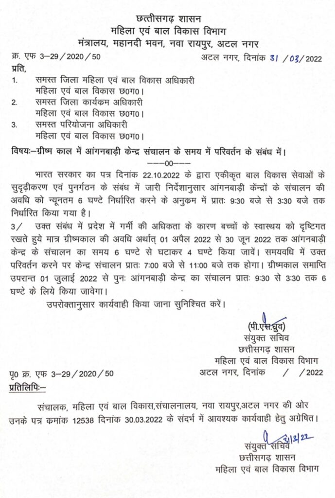 आंगनबाड़ी केंद्रों के संचालन का समय बदला, आदेश जारी