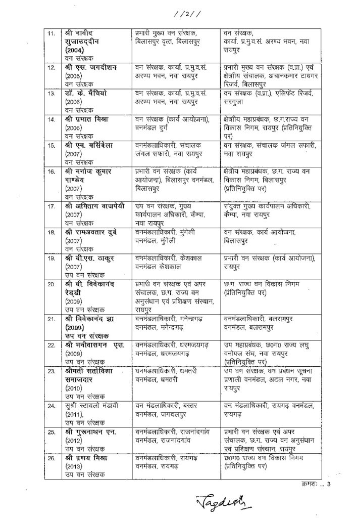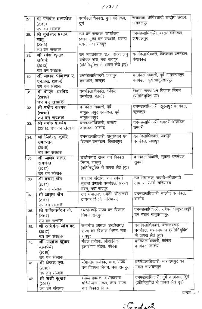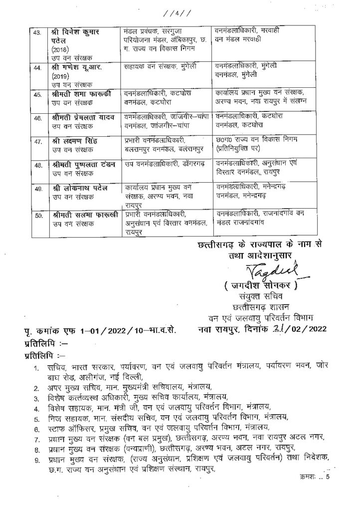 Home कोरबा आखिरकार कटघोरा DFO शमा का तबादला, 50 वन अधिकारी बदले गए…देखें सूची…