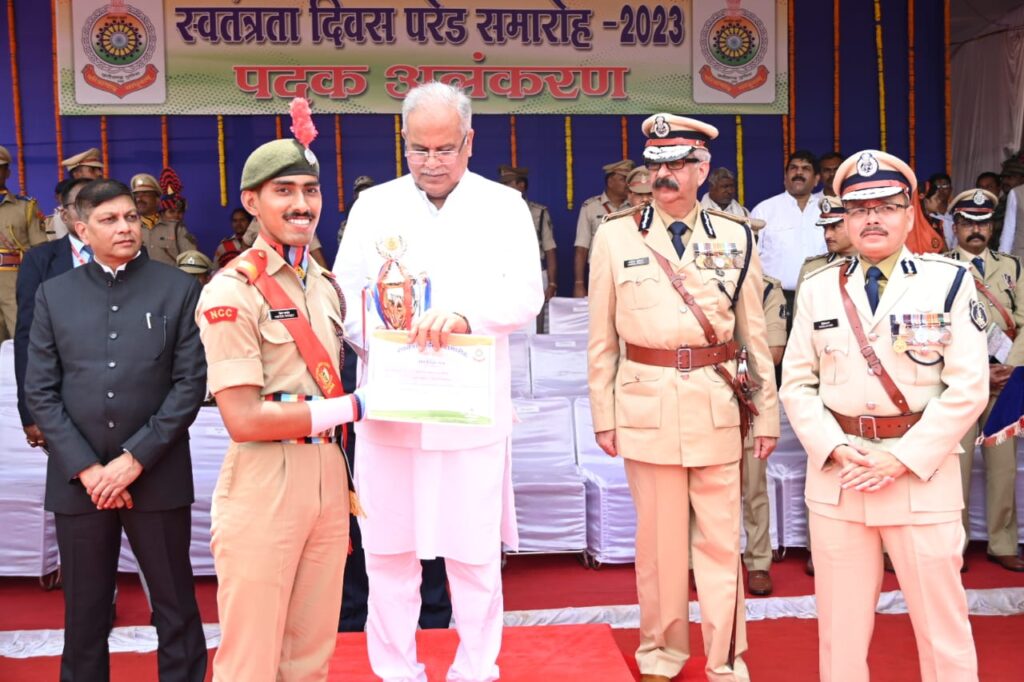 रायपुर(खटपट न्यूज़)। मुख्यमंत्री श्री भूपेश बघेल ने आज राजधानी रायपुर के पुलिस परेड मैदान में आयोजित स्वतंत्रता दिवस के मुख्य समारोह में पुलिस विभाग के अधिकारियों को पुलिस वीरता पदक, सराहनीय सेवा के लिए भारतीय पुलिस पदक, गृह रक्षक एवं नागरिक सुरक्षा सराहनीय सेवा पदक, गुरू घासीदास पुरस्कार, राज्यपाल पुरस्कार, रानी सुबरन कुंवर पुरस्कार, मुख्यमंत्री पुरस्कार वीर नारायण सिंह पुरस्कार और पुलिस महानिदेशक पुरस्कार के लिए चयनित अधिकारियों को पुरस्कार प्रदान किया।