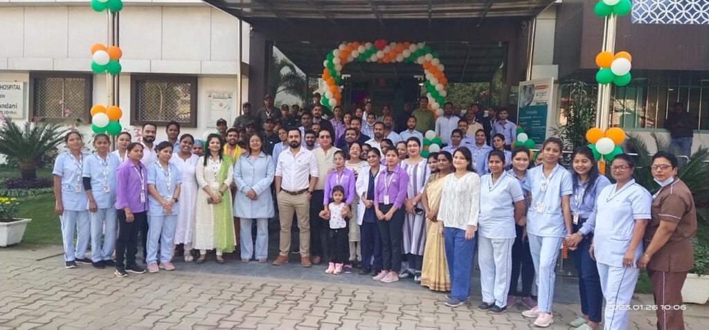 कोरबा (खटपट न्यूज़)। 74 वें गणतंत्र दिवस के अवसर पर न्यू कोरबा ग्रुप ऑफ़ हॉस्पिटल में ध्वजारोहण का कार्यक्रम आयोजित किया गया। निर्धारित सुबह 10:00 बजे ग्रुप डायरेक्टर डॉ एस.चंदानी ने एनकेएच परिसर में तिरंगा फहराया। राष्ट्रगान उपरांत हॉस्पिटल के सुरक्षा गार्ड द्वारा सलामी दी गई। तद्पश्चात शहीदों को श्रद्धांजलि अर्पित की गई। डॉ. चंदानी ने गणतंत्र दिवस की 74 वीं वर्षगांठ के पावन अवसर पर प्रदेशवासियों, डॉक्टरों एवं समस्त स्टाफ को हार्दिक बधाई और शुभकामनाएं दी। इस दौरान डॉ. चंदानी ने कहा है कि हम सभी को गणतंत्र दिवस पर स्वतंत्रता संग्राम सेनानियों के बलिदान, व्यक्तित्व और आदर्शों से प्रेरणा लेकर जीवन में चरित्र और नैतिक मूल्यों के गुणों को आत्मसात करना चाहिए। यह पर्व राष्ट्रीय एकता, शांति और सद्भाव की भावना को सुदृढ़ करने का अवसर है। उन्होंने समस्त स्टाफ से नईं ऊर्जा व नई शक्ति के साथ बेहतर स्वास्थ्य सेवाएं देने का आह्वाहन किया। इस अवसर पर डॉ. एस. पालीवाल, डॉ. आर. पालीवाल, डॉ. ज्योति श्रीवास्तव, डॉ. नागेंद्र बागड़ी, डॉ अविनाग सिंघ सहित हॉस्पिटल स्टाफ मौजूद थे अंत में तिरंगे रंग के गुब्बारे आकाश में छोड़ गए।