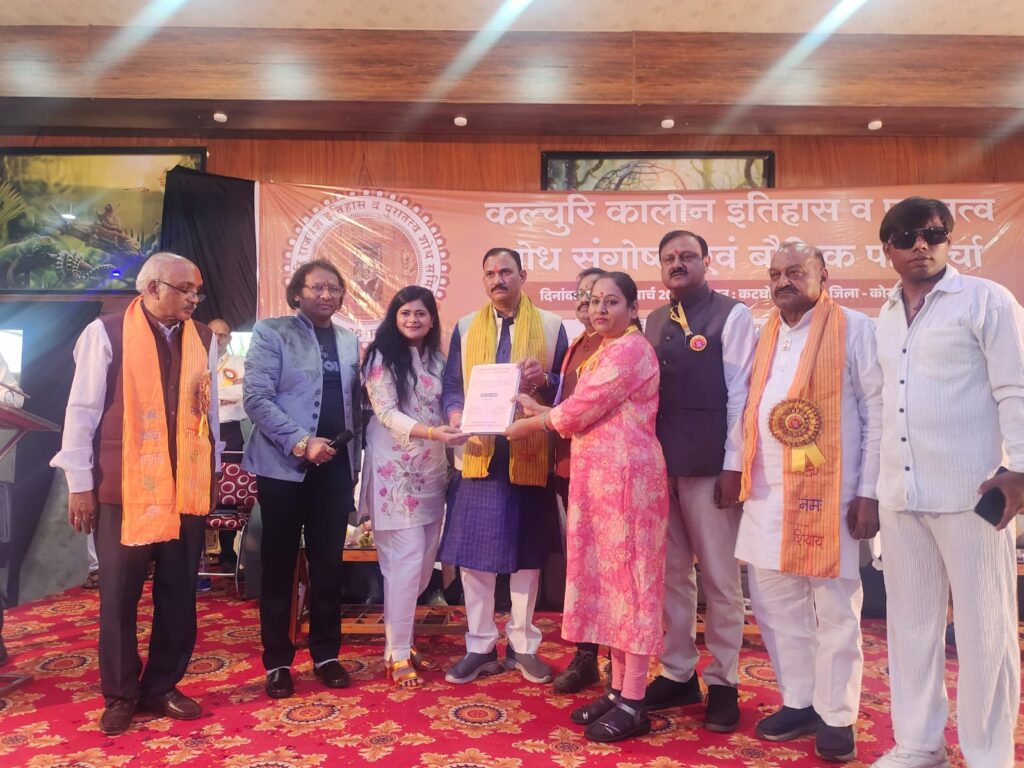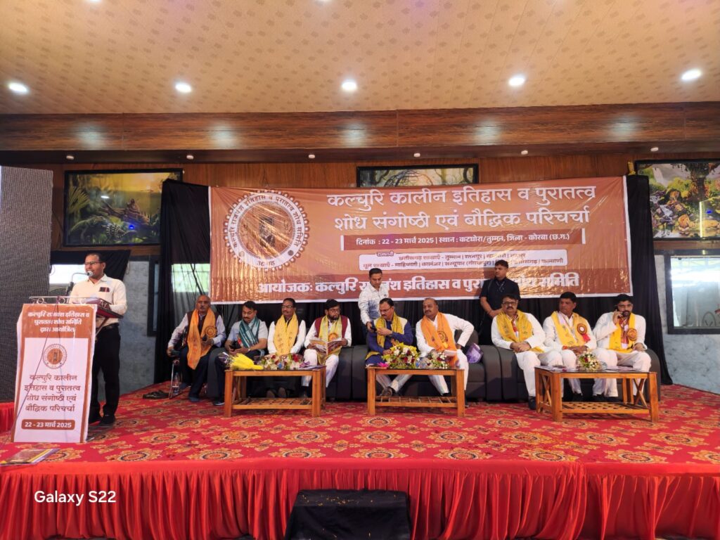 कोरबा-कटघोरा (खटपट न्यूज)। कलचुरी राजवंश इतिहास व पुरातत्व शोध समिति द्वारा कटघोरा गोकुलधाम कलचुरी कालीन इतिहास व पुरातत्व शोध संगोष्ठी एवं बौद्धिक परिचर्चा सम्मेलन का आयोजन किया गया ।