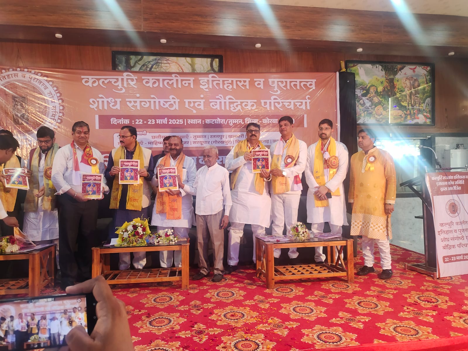 मंच पर उपस्थित सभी अतिथियों द्वारा इष्ट देव, देवी की प्रतिमा पर पूजा-अर्चना कर दीप प्रज्वलित किया गया। श्याम बिहारी जायसवाल ने कहा कि जो कलचुरी कालीन इतिहास पुरातत्व के संदर्भ में रहा है, उसके लिए दो दिवसीय संगोष्ठी कार्यक्रम किया गया है। छत्तीसगढ़ में कल्चुरी शासकों ने एक हजार साल तक राज किया और इतिहास में कलचुरी कालीन राजवंश रहा है, जो कि कलचुरी कालीन शासक है। छत्तीसगढ़ के प्रति योगदान भी रहा है। वह इतिहास में कहीं नहीं झलकता है। कलचुरी साम्राज्य के शोध के लिए इतिहासकार, पुरातत्व वक्ता, सामाजिक चिंतन भी उपस्थित है। छत्तीसगढ़ के प्रथम राजधानी तुमान रहा। छत्तीसगढ़ में कलचुरी शासकों का अथक योगदान रहा और गौरव भी महसूस होता है। स्कूली बच्चों को कलचुरी गौरव की गाथा की इतिहास पढ़ाया जाए। सरकार से निवेदन करेंगे। कलचुरी गौरव मासिक पत्रिका का विमोचन भी किया गया। पत्रिका में छत्तीसगढ़ के पुरातत्व की गाथा लिखी गई है जो इतिहास गवाह हैं। मुख्य अतिथि महोदय श्याम बिहारी जायसवाल मंत्री एवं बॉलीवुड से हीरो मुकेश चौकसे, प्रीति चौकसे को आयोजक समिति द्वारा एक-एक शील्ड देकर सम्मानित किया गया। कार्यक्रम में सुरेंद्रप्रताप जायसवाल, मनोज राय, अखिलेश जायसवाल, धर्मेंद्र जायसवाल, पवन जायसवाल, विजय जायसवाल, राधेश्याम जयसवाल, जीएल राय परमानंद भी विशिष्ट अभयगत के रूप में उपस्थित रहे।