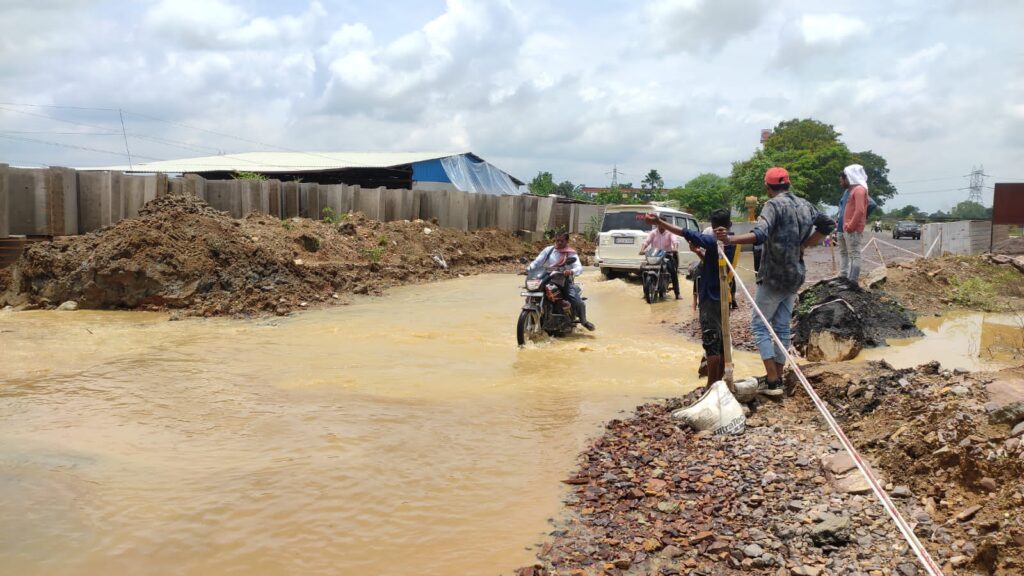 कोरबा(खटपट न्यूज़)। कोरबा जिले के उरगा से चांपा के मध्य निर्माणाधीन फोरलेन सड़क मार्ग के लिए पुल- पुलिया पर बनाए गए डायवर्टेड सड़क पर डामरीकरण नहीं करने का खामियाजा अब बरसात में भुगतना पड़ रहा है। कोथारी के पास डायवर्टेड सड़क पर ऊपर से पानी बह रहा है।यहां पानी बहने के कारण आवागमन में दिक्कत हो रही है साथ ही कच्चे मार्ग में कीचड़ में निर्मित हुआ है। इस वजह से इस मार्ग से आना-जाना दुष्कर होने लगा है।