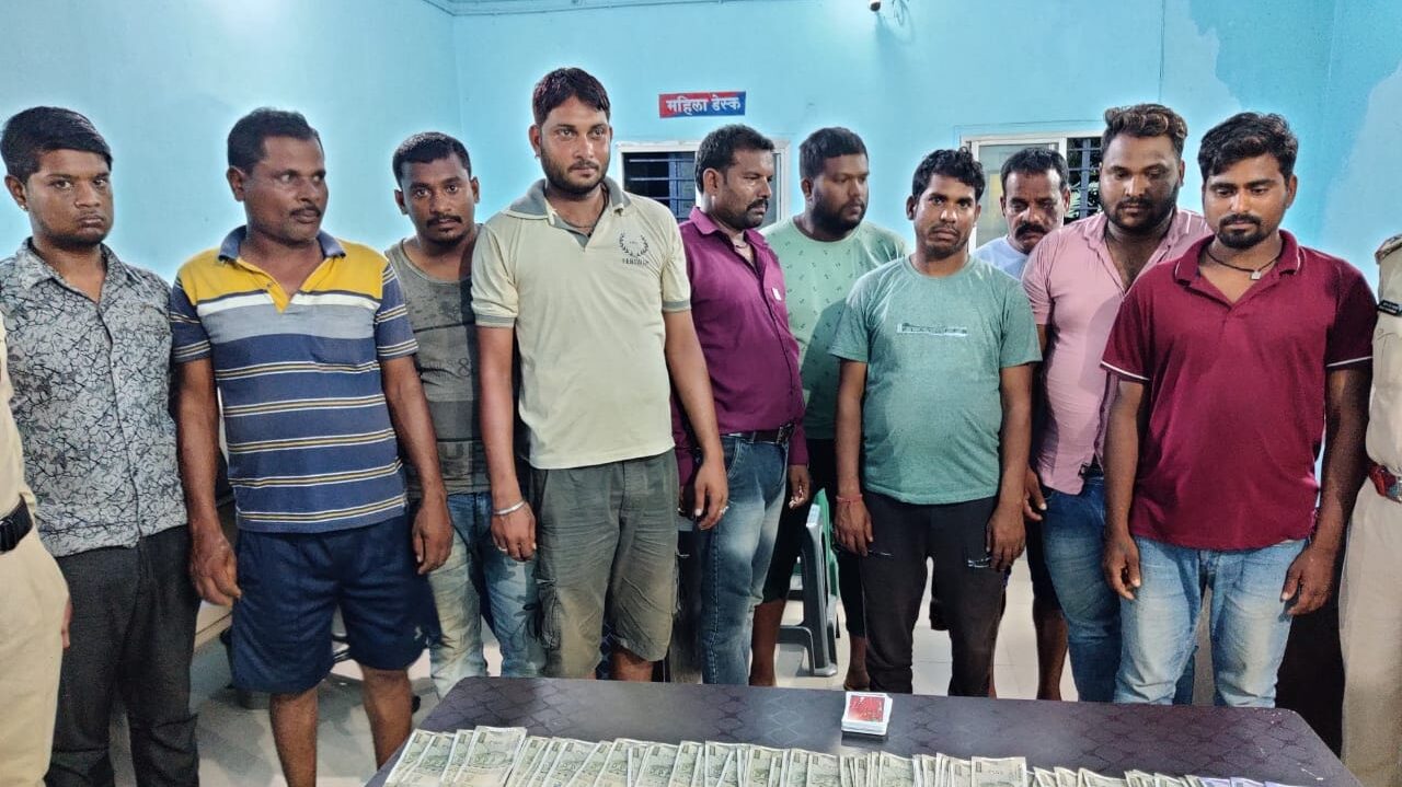 चौकी प्रभारी एसआई मयंक मिश्रा ने बताया कि उनको सूचना मिली थी कि ग्राम नेवसापाठ में कुछ लोग जुआ खेल रहे हैं। सूचना उपरांत पुलिस टीम ने मौके पर घेराबंदी की। इसकी भनक लगते ही जुआरियों ने यहां से भागने में भलाई समझी जिन्हें दौड़ाकर पकड़ा गया। पहाड़ और जंगल का फायदा उठाकर कुछ जुआरी भाग निकले जबकि 10 लोग हाथ लग गए। पकड़े गए जुआरियों में भागवत कुमार प्रजापति पिता चैतराम प्रजापति 29 वर्ष हरदीबाजार, हरिराम साहू पिता लखन लाल साहू 41 वर्ष नेवसा, निखिल राठौर पिता अनिल राठौर 23 वर्ष हरदीबाजार दीपका रोड, नितिष पाण्डे पिता टीकाराम 21 वर्ष मुड़ापार, दिनेश राठौर पिता मि_ूराम राठौर 47 वर्ष शिक्षक कालोनी हरदीबाजार, दलेश्वर सिंह राठौर पिता कौशल प्रसाद 40 वर्ष हरदीबाजार दीपका रोड, धनेश्वर भारद्वाज पिता फिरताराम 27 वर्ष भिलाईबाजार, मुकेश कुमार यादव पिता स्व. सूरज प्रताप 26 वर्ष हरदीबाजार पुरानी बस्ती, किशोर यादव पिता लखन लाल यादव 43 बजरंग चौक सरईसिंगार, बाबी राठौर पिता रतन सिंह राठौर 30 वर्ष हरदीबाजार पुरानी बस्ती शामिल हैं। इनके पास एवं फड़ से नगदी 32,300 रुपए, 52 पत्ती ताश एवं 1 नग बोरी फट्टी बरामद किया गया। उपरोक्त कार्यवाही में उप निरीक्षक मयंक मिश्रा, एएसआई धनंजय सिंह नेटी, प्रधान आरक्षक ओमप्रकाश बैस, आरक्षक संजय चन्द्रा, कमल कैवर्त, प्रवीण राजवाड़े, प्रफुल्ल साहू,गौकरण श्याम, गौतम पटेल की महत्वपूर्ण भूमिका रही।