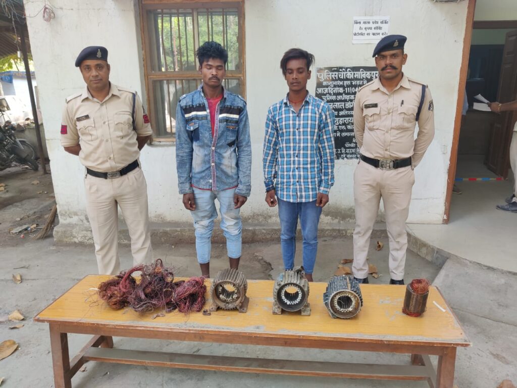 पुलिस चौकी के स्टॉफ द्वारा तकनीकी साक्ष्य व स्थानीय सूचना तंत्र के सहयोग से आरोपी दिनेश चौहान पिता फिरतु राम चौहान उम्र 21 वर्ष निवासी आजाद चौक मुड़ापार व बलराम निषाद पिता स्व.मन्नु निषाद 20 वर्ष निषाद मोहल्ला मुड़ापार को हिरासत में लिया गया। इनके संयुक्त कब्जे से चोरी गये मशरूका को शत-प्रतिशत बरामद कर दोनों को गिरफ्तार कर न्यायिक रिमांड पर जेल भेजा गया है।
