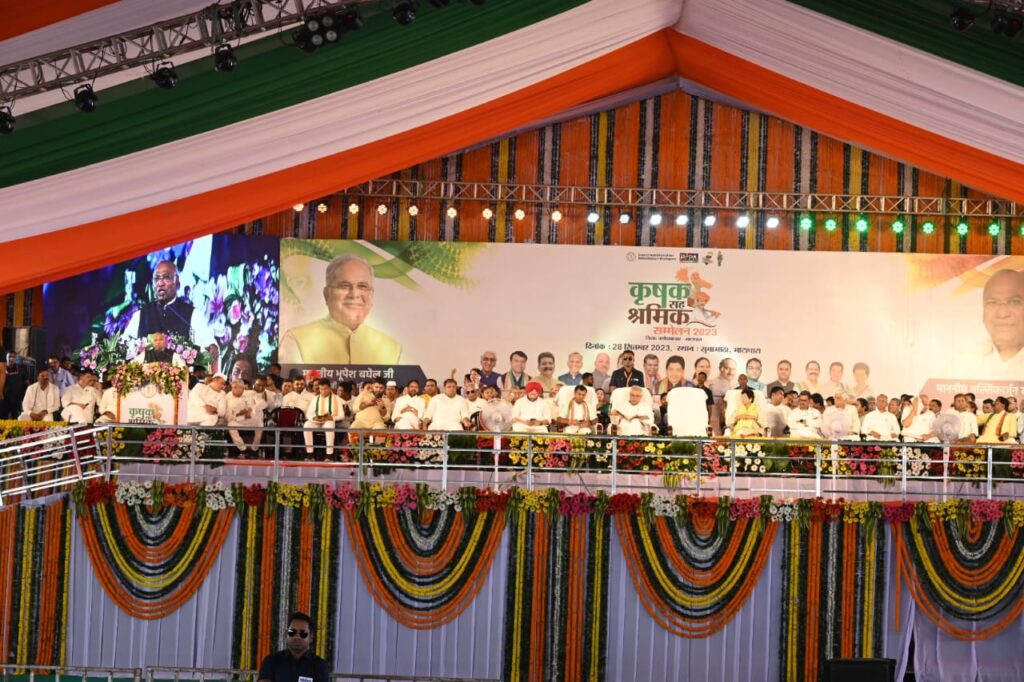 महिलाओं को प्रतिनिधित्व देने की हमारी परंपरा- सम्मेलन को सम्बोधित करते हुए श्री खड़गे ने स्वर्गीय मिनी माता को याद किया। उन्होंने कहा कि स्वतंत्र भारत में छत्तीसगढ़ से चुने गये पार्लियामेंट के प्रतिनिधियों में मिनी माता भी शामिल थीं। महिलाओं को प्रतिनिधित्व देने की हमारी परंपरा रही है। देश में इंदिरा गांधी पहली महिला प्रधानमंत्री बनीं। प्रतिभा पाटिल देश की राष्ट्रपति चुनी गईं। हमारा मत है कि महिला आरक्षण को इसी वक्त लागू करना चाहिए। जातिगत जनगणना होनी चाहिए, इससे सभी वर्गों की स्पष्ट स्थिति की जानकारी होगी। पिछड़े वर्गों के आर्थिक स्थिति की जानकारी होगी और इसके मुताबिक योजनाएं बनाई जा सकती हैं जो प्रभावी होगी।