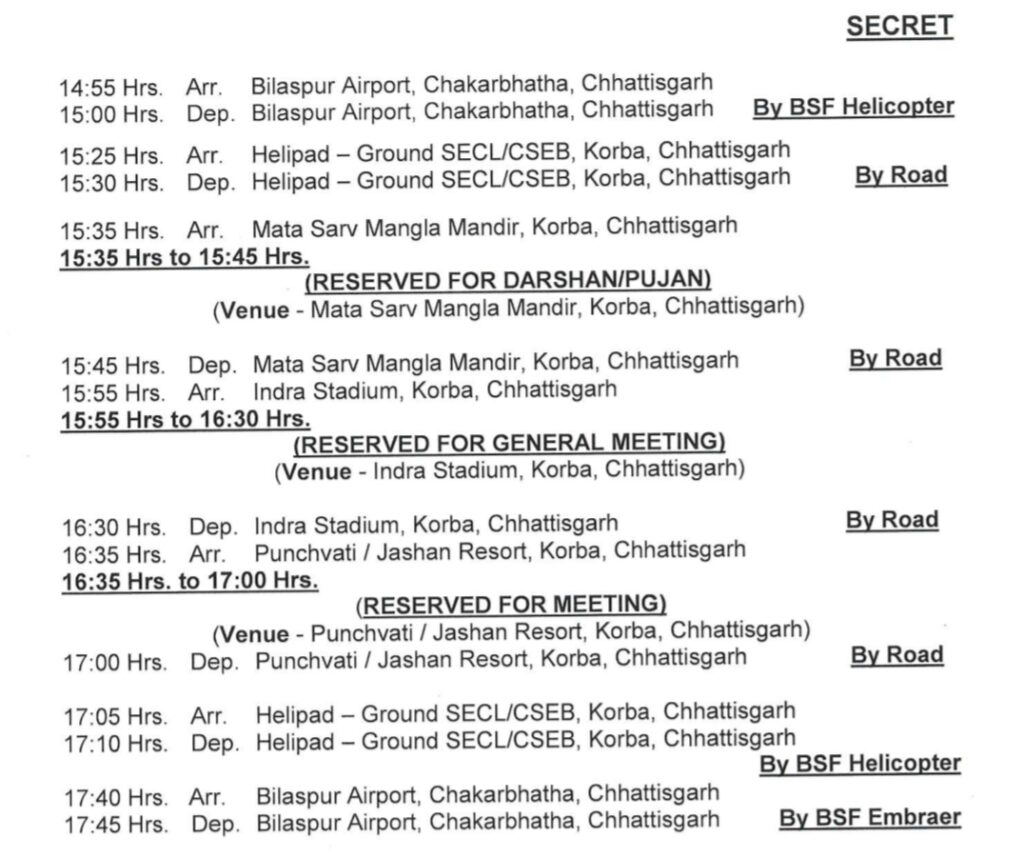 0 कोरबा प्रवास से संबंधित कार्यक्रम तय