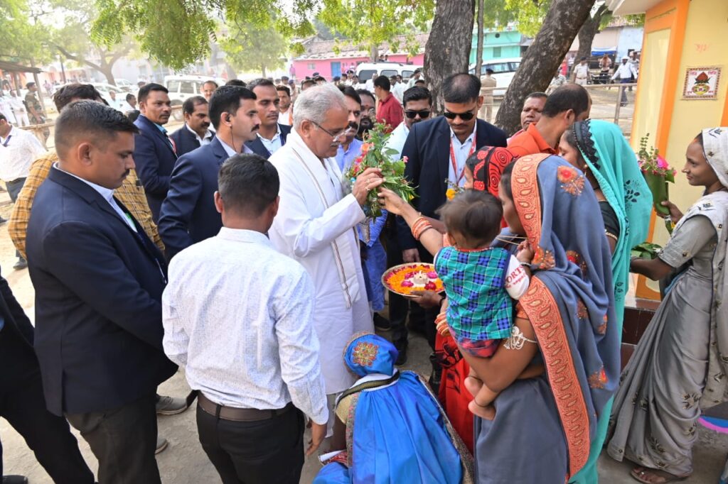 श्री बरेठ के परिवारजनों ने मुख्यमंत्री श्री बघेल का आरती कर किया आत्मीय स्वागत