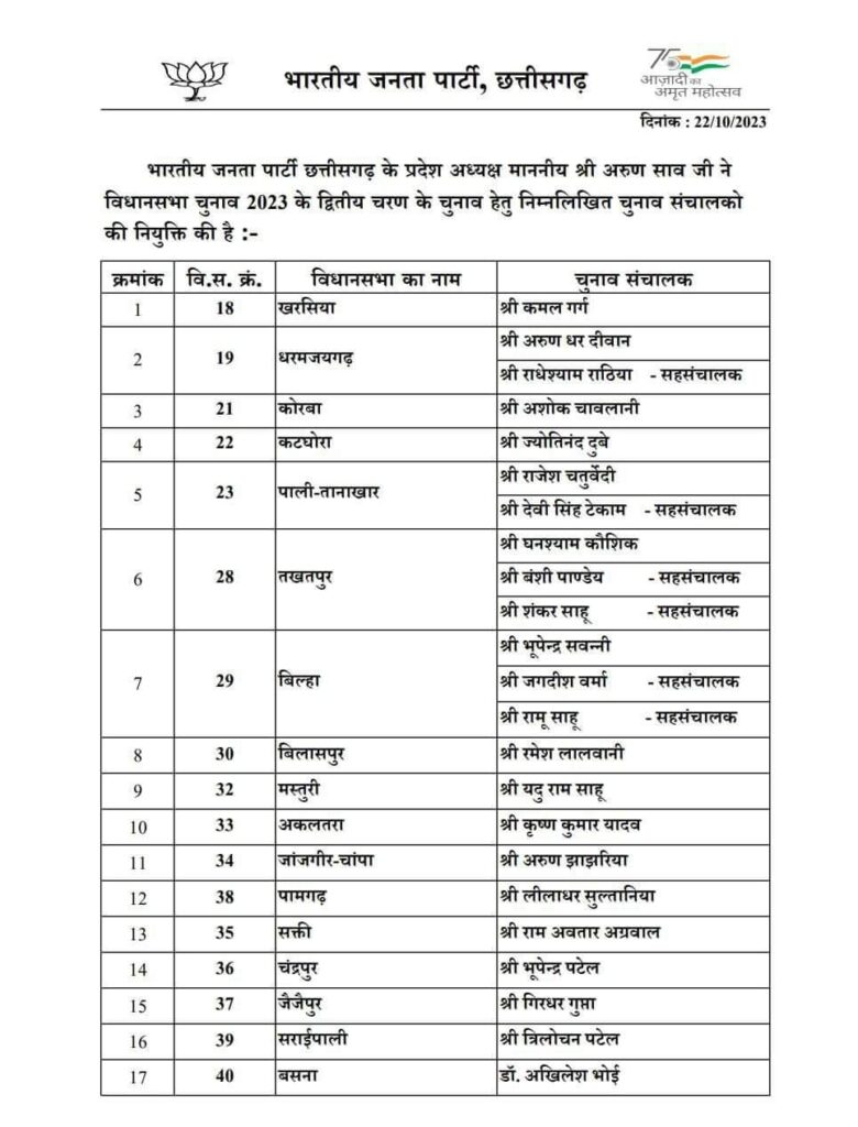 0 प्रदेश भाजपा ने दूसरे चरण के लिए घोषित किए हैं चुनाव संचालक व सह संचालक
