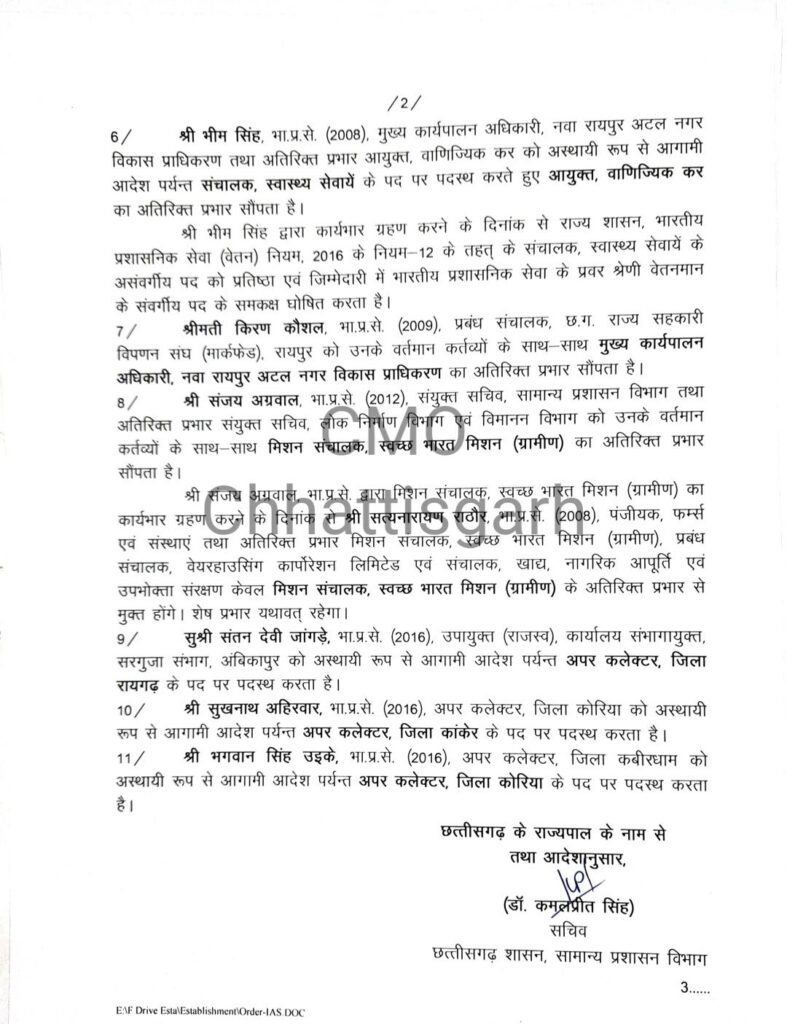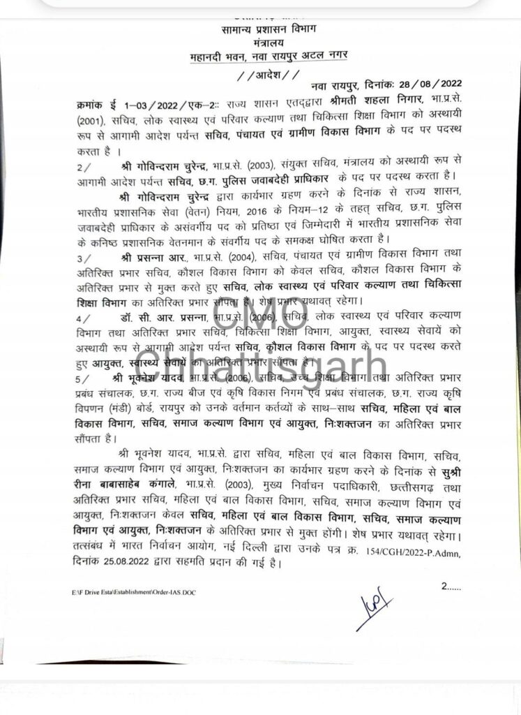 छत्तीसगढ़रायपुरछग: इन 11 IAS अधिकारियों के तबादले,अतिरिक्त प्रभार भीBy Khatpat News - August 28, 2022FacebookXPinterestWhatsApp रायपुर(खटपट न्यूज़)। छत्तीसगढ़ शासन के सामान्य प्रशासन विभाग मंत्रालय द्वारा 11 आईएएस अफसरों की पदस्थापना में फेरबदल किया गया है। भारतीय प्रशासनिक सेवा के कुछ अधिकारियों को अतिरिक्त प्रभार भी सौंपा गया है। Advertisement Carousel ×