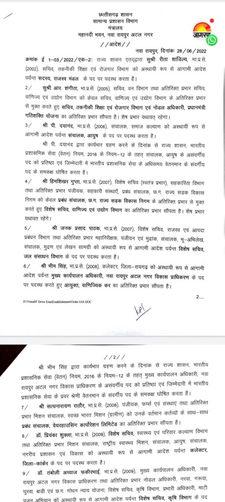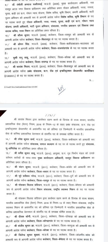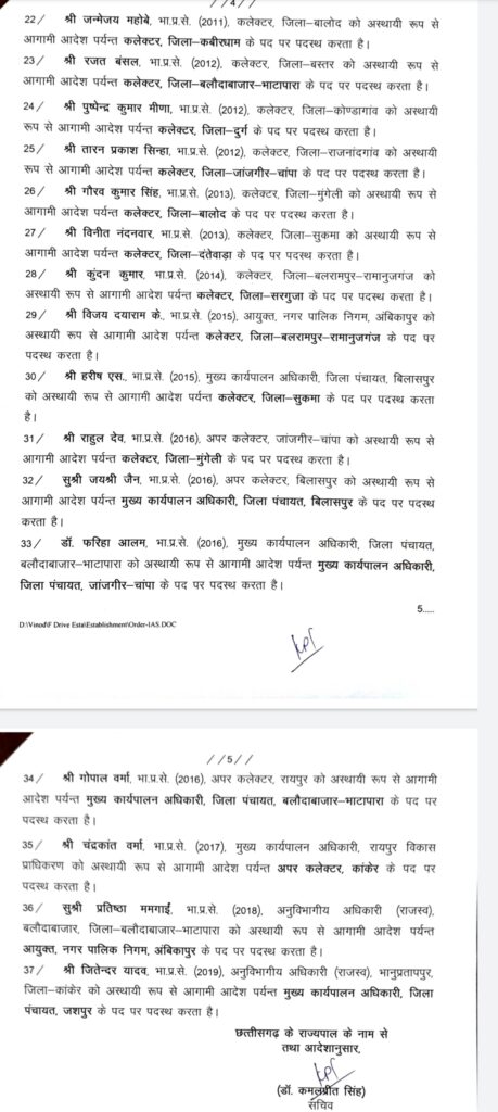 रायपुर/कोरबा(खटपट न्यूज़)। राज्य के विभिन्न जिलों में पदस्थ भारतीय प्रशासनिक सेवा के 37 अधिकारियों का तबादला किया गया है। जारी आदेश में कोरबा जिले की कलेक्टर श्रीमती रानू साहू भी प्रभावित हुई हैं ।कोरबा कलेक्टर श्रीमती रानू साहू का रायगढ़ ट्रांसफर किया गया है। उनके स्थान पर संजीव झा को कोरबा कलेक्टर पदस्थ किया गया है।
