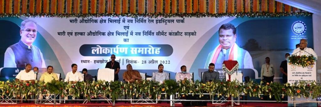 मुख्यमंत्री भूपेश बघेल ने हथखोज में रेल इंडस्ट्रियल पार्क तथा भिलाई में विभिन्न अधोसंरचनाओं का किया लोकार्पण