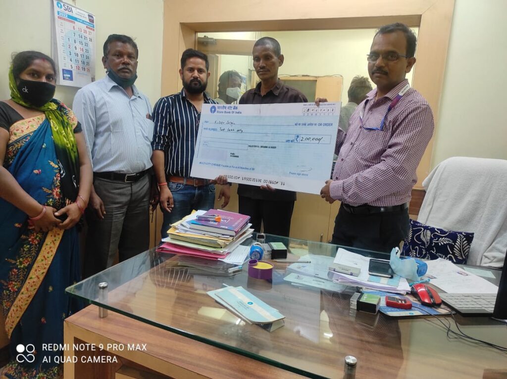 -ग्राम बनबांधा के कुबेर सिंह को उनकी पत्नी की मृत्यु पर प्रधानमंत्री जीवन ज्योति बीमा अंतर्गत मिली दो लाख रुपए की बीमा राशि