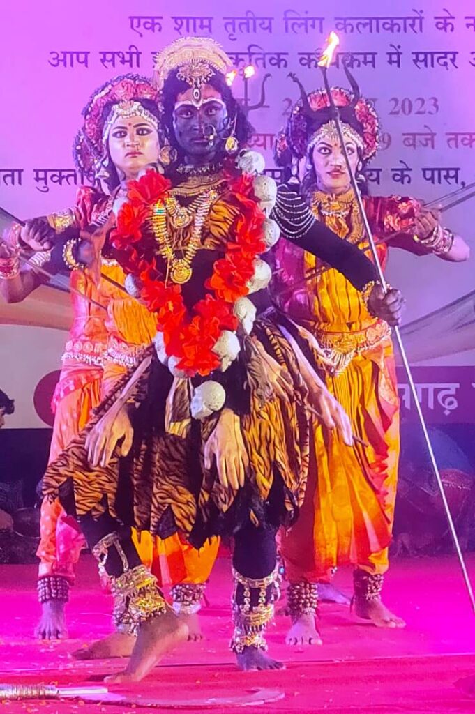 दुर्ग के कांता एली महानंद ने क्लासिकल नृत्य की प्रस्तुति दी। प्रतिमा डांस ग्रुप द्वारा किन्नर के जीवन पर आधारित आकर्षक एवं संगीतमय कार्यक्रम प्रस्तुत किया गया। इस अवसर पर पुलिस विभाग के अधिकारी ए.आई.जी. श्री संजय सिंह, जनसंपर्क विभाग के संयुक्त संचालक श्री आलोक देव, समाज कल्याण विभाग के संयुक्त संचालक श्री नदीम काजी, उप संचालक संस्कृति एवं राजभाषा श्री उमेश मिश्रा, आदिवासी कला परिषद के अध्यक्ष श्री नवल शुक्ला, तृतीय लिंग समूह से विद्या राजपूत, वरिष्ठ फोटो ग्राफर दीपेन्द्र दीवान सहित गणमान्य नागरिक उपस्थित थे।