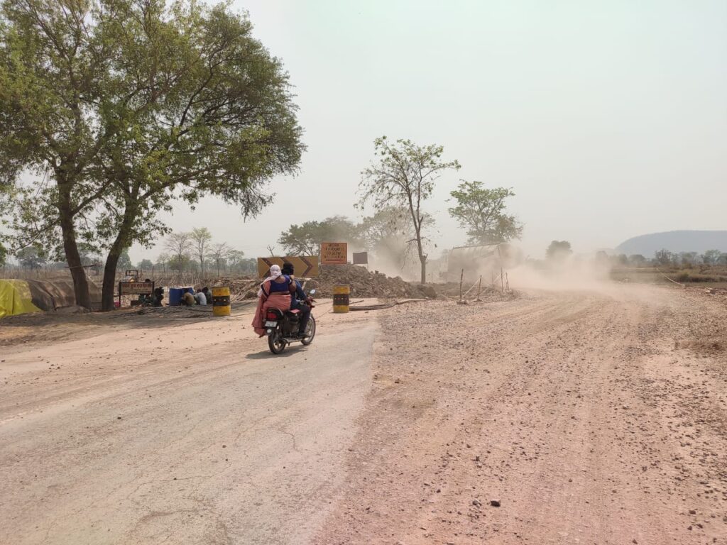इसके कारण डायवर्सन कच्ची सड़क से गुजरने वाले छोटे-बड़े-मध्यम वाहनों को भारी धूल का सामना करना पड़ रहा है। इस कच्चे मार्ग पर पानी का नियमित छिड़काव भी नहीं किया जा रहा है जबकि नेशनल हाइवे-149बी के एसओपी में उल्लेखित है लेकिन ठेकेदार द्वारा न तो पानी का छिड़काव कराया जा रहा है और न ही डिटेल प्रोजेक्ट रिपोर्ट व एसओपी के अनुसार डायवर्टेड मार्ग को डामरीकरण कराया जा रहा है। गड्ढेयुक्त व अमानक स्तर के डायवर्सन मार्ग से आवागमन और छोटे-बड़े वाहनों के गुजरने से उड़ने वाली धूल का गुबार के कारण हादसों की आशंका हर समय बनी रहती है। खासकर रात के वक्त ज्यादा परेशानी हो रही है। अमानक डायवर्सन मार्ग के कारण आवागमन करने वालों का जीवन संकट में डाला जा रहा है। इस समस्या से अवगत कराने एवं डायवर्टेड सड़क संंबंधी नियमों के बारे में चर्चा करने इस फोरलेन परियोजना के प्रगति इकाई अधिकारी वायबी सिंह से संपर्क करने का प्रयास किया गया किंतु संपर्क नहीं हो सका।