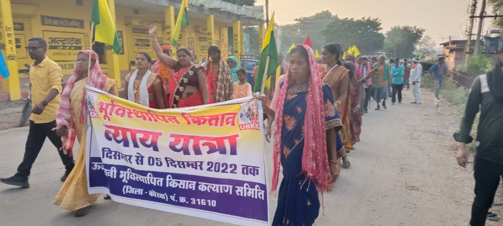 बता दें कि संगठन के अध्यक्ष सपुरन कुलदीप के नेतृत्व में एसईसीएल के गेवरा मुख्यालय के सामने से यह पदयात्रा 2 दिसम्बर को प्रारंभ हुई। भूविस्थापितों ने अपनी 11 सूत्रीय मांगों के लिए आवाज बुलंद की और नारेबाजी करते हुए गेवरा से बिलासपुर के लिए प्रस्थान किए। न्याय यात्रा में सैकड़ों की संख्या में भू विस्थापित एवं क्षेत्रीय किसान शामिल हुए हैं जो एसईसीएल की कोरबा जिले में संचालित हो रहे सभी खदान परियोजनाओं से प्रभावित हैं। दशकों पूर्व कोयला खदान के लिए अपना खेत, जमीन, घर-बार देने के बाद ये भूविस्थापित नौकरी, मुआवजा, बसाहट और मूलभूत सुविधाओं के लिए आज भी जूझ रहे हैं। इनके हक की लड़ाई ऊर्जाधानी भूविस्थापित किसान कल्याण समिति के द्वारा प्रभावित भूविस्थापितों के सहयोग से लड़ी जा रही है। समिति के अध्यक्ष सपुरन कुलदीप ने कहा है कि यह लड़ाई तब तक जारी रहेगी जब तक एसईसीएल प्रबंधन भूविथापितों को उनका अधिकार नहीं दे देता। नौकरी के लंबित मामलों का निराकरण करने के साथ-साथ नई नौकिरियों के मामले में अनेक-अनेक कारण बताकर लटकाए जा रहे हैं। भूविस्थापितों को स्वास्थ्य, बेहतर शिक्षा, सड़क, पानी, बिजली जैसी मूलभूत सुविधाओं के लिए जूझना पड़ रहा है। इस न्याय यात्रा में गैर सरकारी संगठन सार्थक के सचिव लक्ष्मी चौहान, समिति के पदाधिकारियों सहित भू-विस्थापित परिवार, सामाजिक व राजनीतिक संगठनों सहित आमजनों का भी सहयोग प्राप्त हो रहा है।