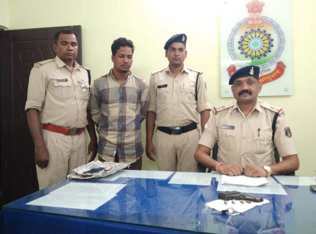 कोरबा(खटपट न्यूज़)। पुलिस अधीक्षक भोजराम पटेल द्वारा अवैध गतिविधियों में लिप्त अपराधियों, गुंडा बदमाशों के विरुद्ध लगातार प्रभावी कार्यवाही करने हेतु निर्देश दिया गया है। निर्देश के पालन में अतिरिक्त पुलिस अधीक्षक अभिषेक वर्मा के नेतृत्व एवं नगर पुलिस अधीक्षक योगेश साहू के पर्यवेक्षण में कोरबा पुलिस लगातार कार्यवाही कर रही है । इस कड़ी में रामपुर पुलिस चौकी के नव पदस्थ प्रभारी एसआई कृष्णा साहू को आज प्रातः मुखबिर के माध्यम से सूचना प्राप्त हुआ कि आलोक बड़ा पिता लोकिरियस बड़ा निवासी आईटीआई कॉलोनी रामपुर काले रंग के मोटरसाइकिल में पिस्टल लेकर लेकर घूम रहा है। सूचना पर रामपुर पुलिस द्वारा दबिश देकर आलोक बड़ा को 1 पिस्टल एवं 4 नग जिंदा कारतूस के साथ गिरफ्तार किया गया।