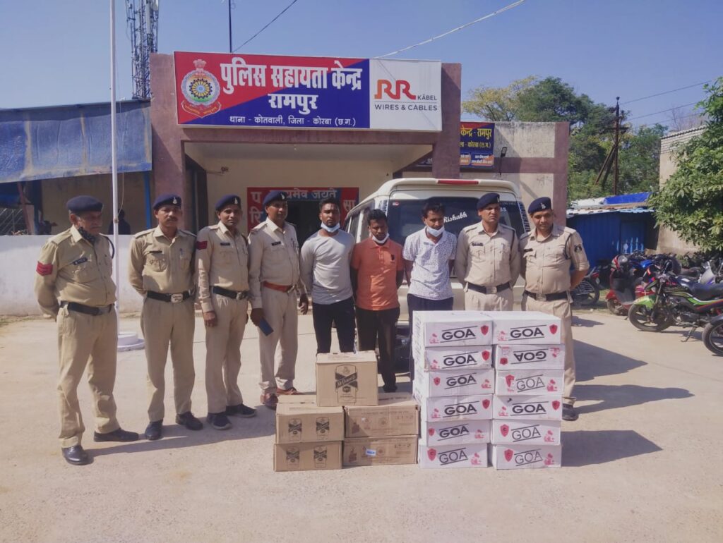 कोरबा (खटपट न्यूज़)। रामपुर चौकी पुलिस एवं विशेष टीम ने एक सूचना पर कार्यवाही करते हुए मध्य प्रदेश की 17 पेटी अंग्रेजी शराब की जप्ती की है। एक स्कॉर्पियो वाहन भी जप्त किया गया है जिसमें प्रेस लिखकर शराब की तस्करी की जा रही थी। पुलिस ने इस प्रकरण में प्रदीप कुमार अग्रवाल, मुकेश कुमार राठिया दोनों निवासी ग्राम बेहरचुवा एवं अभिषेक यादव निवासी बाराद्वार को गिरफ्तार किया है।