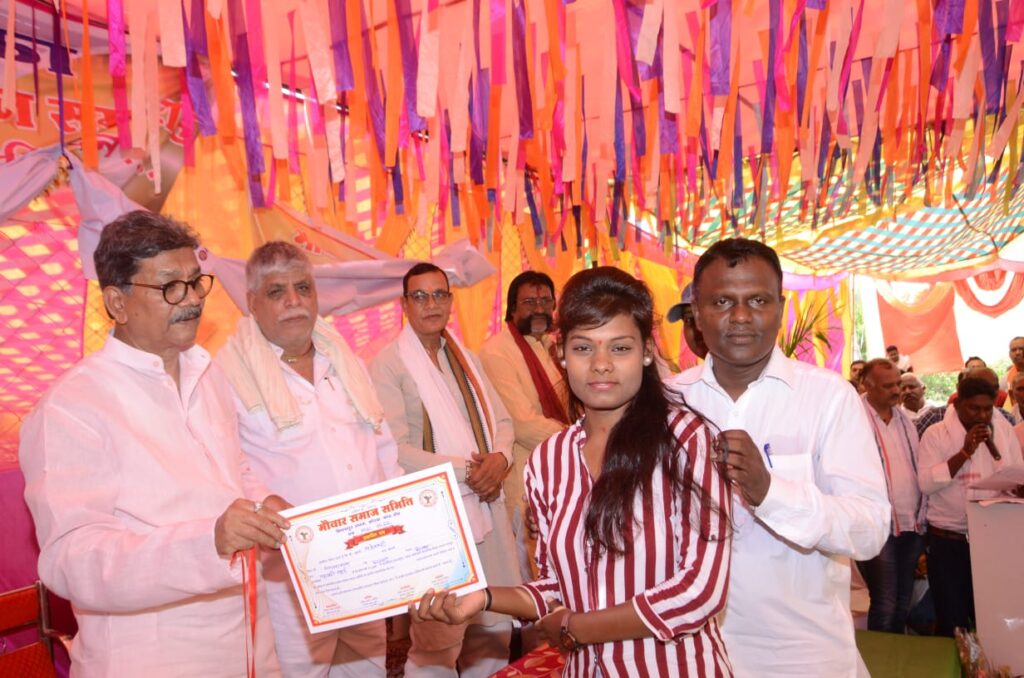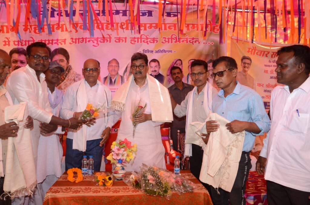 उन्होंने समाज के सामुदायिक भवन के लिए 10 लाख रुपए देने की घोषणा की। डॉ महंत ने कहा कि क्षेत्र की सांसद ज्योत्सना महंत कुछ कारणवश आगे नहीं आ पाई। उनके स्थान पर पुत्र सूरज महंत आए हैं। आगे कोई भी कार्यक्रम होगा तो सांसद जरूर आएंगी। पूर्व विधायक श्यामलाल कंवर ने कहा कि क्षेत्र की समस्याओं का निराकरण करने डॉ महंत हमेशा साथ देते रहे हैं। आगे भी उनका आशीर्वाद मिलता रहेगा। कार्यक्रम को वरिष्ठ कांग्रेसी मनहरण राठौर, प्रमोद राठौर, गुलजार सिंह ठाकुर ,समाज के पूर्व अध्यक्ष सुखसागर मन्नेवार ने भी संबोधित किया। इसके बाद अतिथियों ने 10वीं और 12वीं की बोर्ड परीक्षा में प्रथम श्रेणी उत्तीर्ण करने वाले छात्र छात्राओं को मेडल और प्रमाण पत्र देकर सम्मानित किया। स्वागत उद्बोधन समाज के अध्यक्ष देव प्रसाद ने दिया। कार्यक्रम में समाज के संरक्षक विशाल नाथ सिंह, उपाध्यक्ष छत राम, सचिव सुरेश मन्नेवार, सह सचिव ज्योति सागर, सुनीलाल, गणेश राम, गोविंद राम, चुमुक लाल, रविंद्र शर्मा, सरपंच रोशन बरेठ, जगदीश यादव समेत बड़ी संख्या में जनप्रतिनिधि और समाज की महिलाएं बच्चे उपस्थित थे। कार्यक्रम का संचालन रामकुमार ने किया।