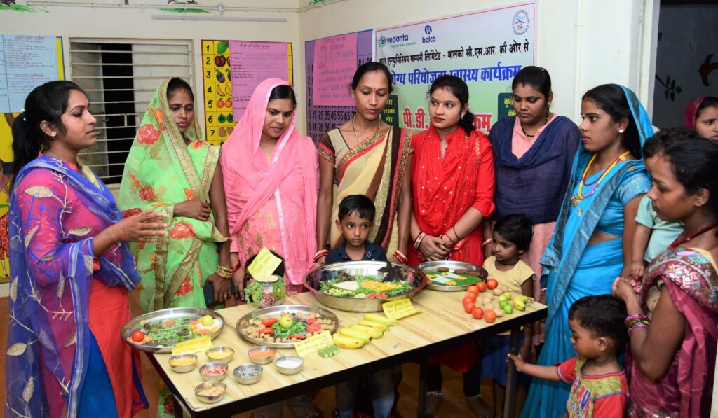 कोरबा-बालकोनगर (खटपट न्यूज)। वेदांता समूह की कंपनी भारत एल्यूमिनियम कंपनी लिमिटेड (बालको) के सामुदायिक विकास परियोजना ‘आरोग्यÓ और राष्ट्रीय पोषण मिशन (प्रधानमंत्री व्यापक पोषण योजना) के अंतर्गत पोषण माह जागरूकता कार्यक्रम आयोजित किया गया। पोषण माह का उद्देश्य गर्भवती महिलाओं और स्तनपान कराने वाली माताओं के लिए स्वस्थ खान-पान, संतुलित आहार के प्रति जागरूक करना है। बालको पोषण संबंधी परिणामों में सुधार के साथ ही स्थानीय समुदायों को संवेदनशील बनाने की दिशा में काम कर रहा है।
