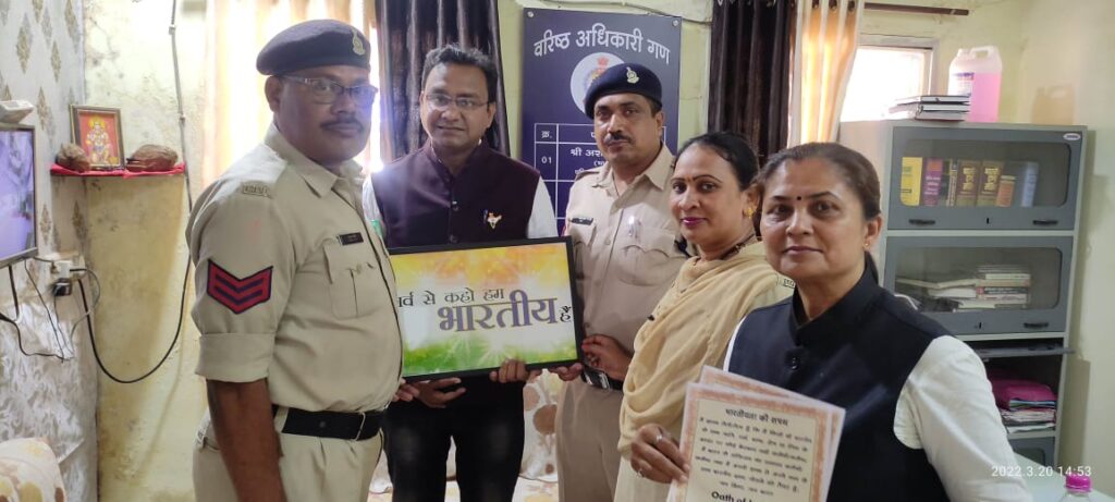 दुर्ग-भिलाई(खटपट न्यूज़)। अखिल भारतीय परिवार पार्टी द्वारा पुरे देश मे भारतीयता की मुहीम चलाई जा रही है जिसके उपलक्ष्य मे छत्तीसगढ़ के दुर्ग जिले के कोतवाली थाना sec-6 , भट्टी थाना sec-3, भिलाई-3 थाना, कुम्हारी थाना, छावनी थाना, सुपेला थाना, मोहन नगर थाना, दुर्ग थाना मे गर्व से कहो हम भारतीय हैं का फ्रेम भेंट किया गया।