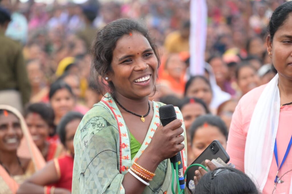 सरोज करपे ने मुख्यमंत्री को बताया कि हाट बाजार क्लिनिक योजना के तहत हर सोमवार को गाड़ी आती है, फ्री में इलाज होता है।