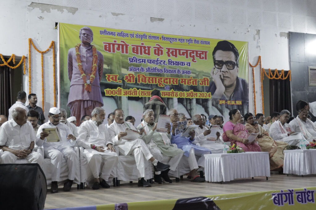 100वीं जयंती शताब्दी समारोह के प्रारंभ में स्व. बिसाहूदास महंत के छायाचित्र के समक्ष पुष्पांजलि अर्पित की गई। मंच पर दीप प्रज्वलन किया गया। इसके पश्चात अंचल के प्रसिद्ध लोक गायक थिरमन दास महंत एवं पार्टी द्वारा संत कबीर के भजनों से श्रद्धांजलि देते हुए कार्यक्रम का शुभारंभ किया गया। इस अवसर पर प्रसिद्ध रेडियो सिंगर स्व. नर्मदा प्रसाद वैष्णव द्वारा बांगो बांध निर्माण के दौरान रचित गीत बांगो बांध बंधा गे रे भैय्या… की प्रस्तुति उनके पुत्र बसंत वैष्णव ने थिरमन दास महंत के साथ दी।