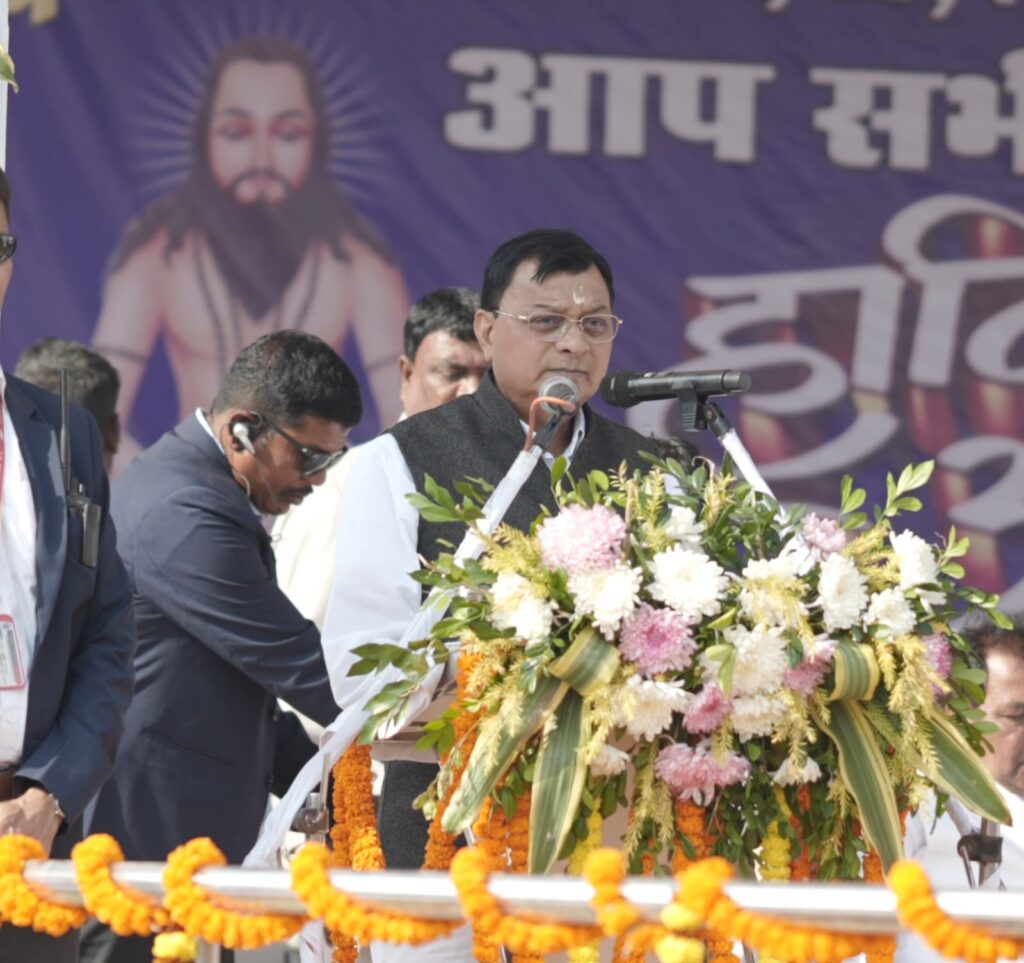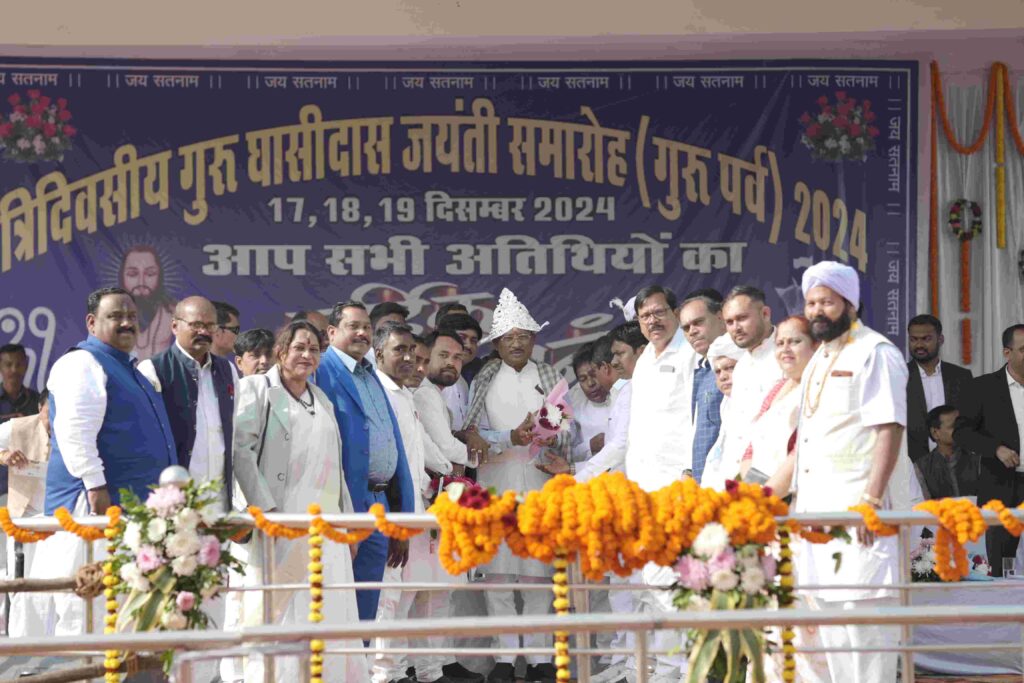 समारोह को सम्बोधित करते हुए विशिष्ट अतिथि नगर विधायक व उद्योग, वाणिज्य और श्रम मंत्री श्री लखनलाल देवांगन ने कहा कि बाबा गुरु घासीदास का संदेश मनखे-मनखे एक समान वर्षों पहले दिया गया था जो आज साकार होता नजर आ रहा है। छत्तीसगढ़ की सरकार भी प्रदेश के विकास को लेकर कार्य कर रही है। सभी समाज को साथ लेकर राज्य का विकास किया जा रहा है। उन्होंने बताया कि गुरु घासीदास जयंती कार्यक्रम स्थल के विकास के लिए सभी प्रकार का सहयोग प्रदान किया जाएगा। यहाँ डोम निर्माण के लिए भी राशि जारी की गई है। आने वाले दिनों में भव्य डोम नजर आएगा। उन्होंने कहा कि मुख्यमंत्री श्री विष्णुदेव साय के नेतृत्व में राज्य का विकास किया जा रहा है। मंत्री श्री देवांगन ने इस जयंती स्थल के सम्बंध में जानकारी देते हुए बताया कि लगभग 50 साल से यहाँ जयंती मनाई जा रही है। यहाँ की जमीन कम दर पर समाज को मिले इसके लिए उन्होंने मुख्यमंत्री को पूरी जानकारी दी है और समाज के हित के लिए निर्णय का अनुरोध किया है। मंत्री श्री देवांगन ने सभी को गुरु पर्व की बधाई और शुभकामनाएं दी है।