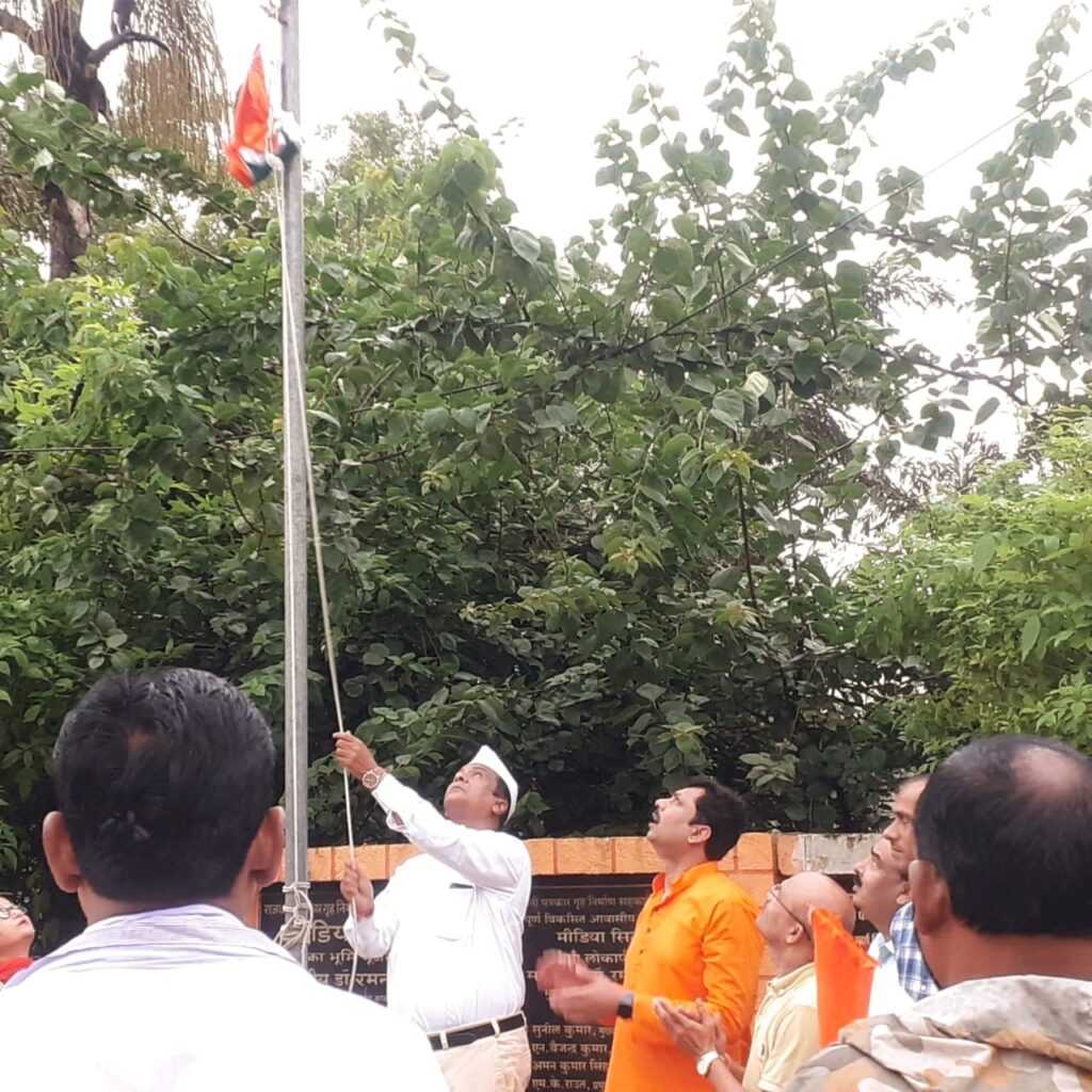 रायपुर। मीडिया सिटी में 75वें सस्वाधीनता दिवस का पर्व बड़े ही हर्षोल्लास एवं गौरवशाली रूप में मनाया गया। बारिश की रिमझिम फुहारों के बीच मीडिया सिटी के सदस्य अपने परिजनों के साथ उपस्थित रहे.