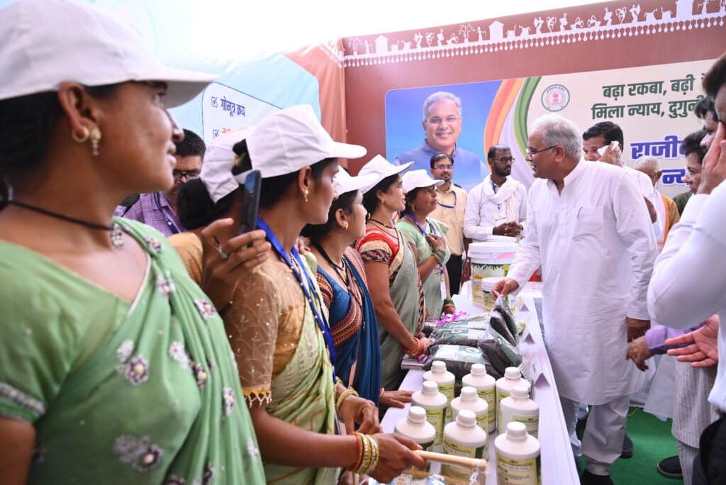 रायपुर(खटपट न्यूज़)। मुख्यमंत्री श्री भूपेश बघेल और पूर्व केन्द्रीय मंत्री सुश्री शैलजा कुमारी ने रविवार दुर्ग जिले के पाटन विकासखण्ड के ग्राम-सांकरा में आयोजित भरोसे के सम्मेलन कार्यक्रम में विभिन्न विभाग द्वारा लगाए गए स्टॉल के अवलोकन के दौरान कृषि विभाग का स्टॉल देखा। उन्होंने उपस्थित राजीव गांधी न्याय योजना, गोधन न्याय योजना के हितग्राहियों से मुलाकात की।