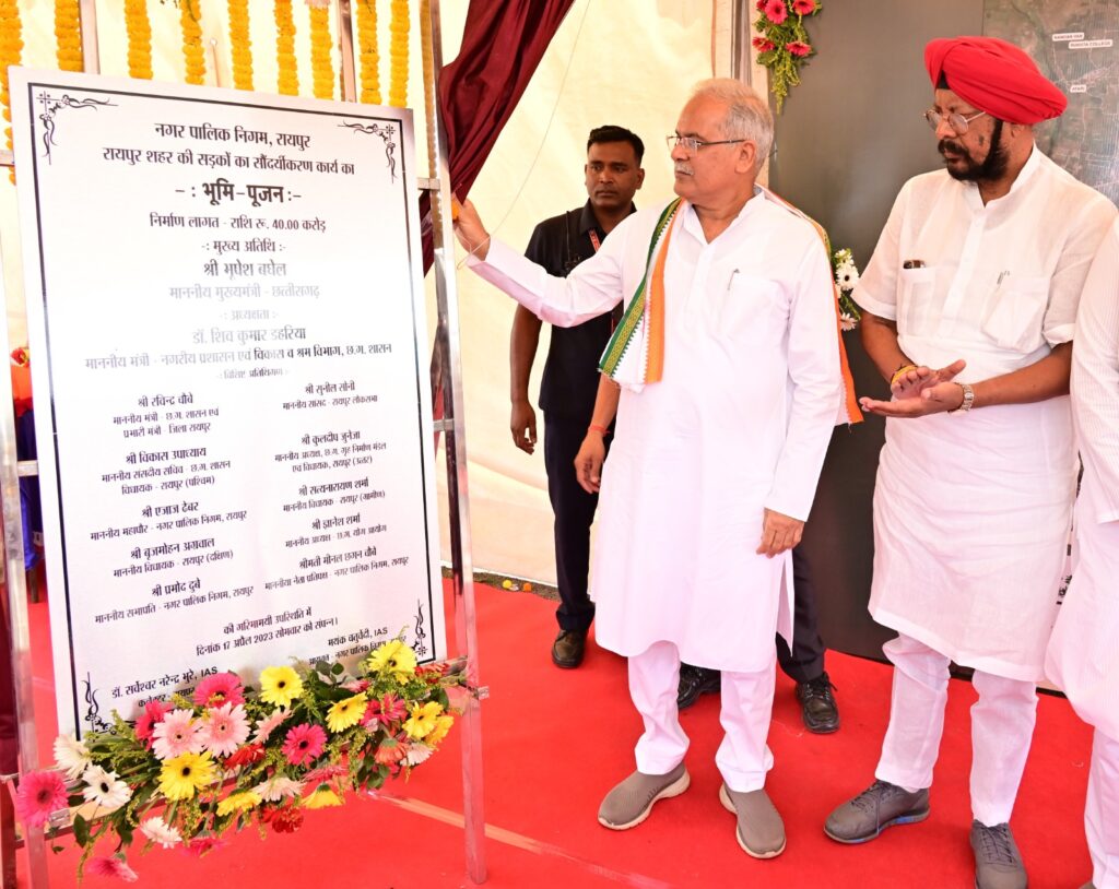 राजधानी के पांच सड़कों के सौंदर्यीकरण कार्यों के तहत जीई रोड, वीआईपी रोड, बलौदाबाजार रोड, स्टेशन रोड, पचपेड़ी नाका रोड का सौंदर्यीकरण किया जाएगा। इस मौके पर विधायक श्री कुलदीप जुनेजा, महापौर श्री एजाज ढेबर, कलेक्टर श्री सर्वेश्वर भूरे, नगर निगम आयुक्त श्री मयंक चतुर्वेदी सहित अनेक जनप्रतिनिधि और गणमान्य नागरिक उपस्थित थें।