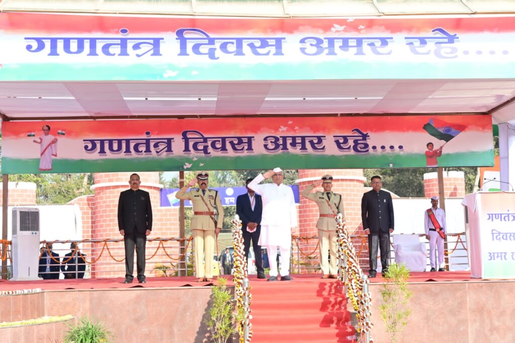 रायपुर/बस्तर(खटपट न्यूज़)। मुख्यमंत्री श्री भूपेश बघेल ने आज 74वें गणतंत्र दिवस के पावन अवसर पर बस्तर जिला मुख्यालय जगदलपुर के लालबाग मैदान में आयोजित मुख्य समारोह में हर्ष और उल्लास के वातावरण में राष्ट्रीय ध्वज फहराया और परेड की सलामी ली।