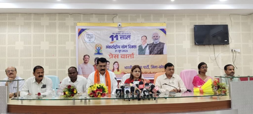प्रेसवार्ता में मुख्य वक्ता के रूप में उपस्थित रहीं राज्य महिला आयोग की पूर्व अध्यक्ष एवं भाजपा की प्रदेश प्रवक्ता श्रीमती हर्षिता पांडेय ने कहा कि, प्रधानमंत्री नरेंद्र मोदी ने देश के विकास के साथ-साथ इसकी सांस्कृतिक विरासत को सहेजने पर भी हमेशा बल दिया है। भारत न केवल कृषि प्रधान राष्ट्र है, बल्कि ऋषियों की भूमि भी है। योग हमारी प्राचीन धरोहर है, जिसे आज पूरी दुनिया ने अपनाया है। योग आत्मा, चेतना और शरीर के सामंजस्य का माध्यम है, जो एकता, संयम और जीवन की शुद्धता का प्रतीक है। उन्होंने आगे कहा कि कोरबा से उनका पुराना और आत्मीय रिश्ता रहा है। “कोरबा में मेरा आना-जाना केवल राजनीतिक नहीं, बल्कि पारिवारिक कार्यों को लेकर अधिक रहा है। यह मेरा सौभाग्य है कि इस पावन धरती पर एक बार फिर मुझे संवाद का अवसर मिला। मुझे विश्वास है कि कोरबा में 21 जून को एक बार फिर एक नया कीर्तिमान स्थापित होगा। श्रम एवं उद्योग मंत्री तथा कोरबा नगर विधायक श्री लखनलाल देवांगन ने कहा कि प्रधानमंत्री नरेंद्र मोदी ने 2014 से न केवल भारत को आर्थिक, सामरिक और वैश्विक स्तर पर सशक्त बनाया, बल्कि भारत की प्राचीन परंपरा योग को भी वैश्विक पहचान दिलाई। उनके प्रयासों से आज 195 से अधिक देशों में 21 जून को योग दिवस बड़े उत्साह से मनाया जाता है। श्री देवांगन ने बताया कि इस वर्ष कोरबा जिले में भाजपा द्वारा लोकमाता अहिल्याबाई होलकर कन्वेंशन सेंटर सहित जिला एवं मंडल स्तर पर सामूहिक योगाभ्यास का आयोजन किया जाएगा। उन्होंने कहा, “प्राचीन काल में जब आधुनिक चिकित्सा नहीं थी, तब योग और आयुर्वेद के माध्यम से ऋषियों-मुनियों ने स्वास्थ्य रक्षा की अनूठी परंपरा बनाई। अगर आज हर नागरिक योग को अपनाए, तो भारत को 2047 तक विकसित राष्ट्र बनाना सरल हो जाएगा।” योग दिवस की वैश्विक स्वीकृति पर प्रकाश डालते हुए यह भी उल्लेख किया गया कि 27 सितंबर 2014 को संयुक्त राष्ट्र महासभा में अपने प्रथम भाषण में प्रधानमंत्री मोदी ने योग को भारत की प्राचीन परंपरा बताते हुए कहा था कि यह मन और शरीर, विचार और क्रिया, संयम और संतुलन का समन्वय है। महज 75 दिनों में 177 देशों के समर्थन से 21 जून को ‘अंतरराष्ट्रीय योग दिवस’ घोषित किया गया था, जो अपने आप में ऐतिहासिक है। प्रेसवार्ता में भाजपा जिलाध्यक्ष गोपाल मोदी, कटघोरा विधायक प्रेमचंद पटेल, जिला पंचायत उपाध्यक्ष श्रीमती निकिता जायसवाल, भाजयुमो महामंत्री एवं पार्षद नरेंद्र देवांगन, अशोक चावलानी, हितानंद अग्रवाल, पूर्व महापौर जोगेश लाम्बा, भाजपा महिला मोर्चा जिलाध्यक्ष वैशाली रत्नपारखी, पूर्व पार्षदगण ऋतु चौरसिया, ज्योति वर्मा, नरेंद्र पाटनवार, कोसाबाड़ी मंडल अध्यक्ष डॉ. राजेश राठौर सहित अन्य भाजपा कार्यकर्ता एवं पदाधिकार