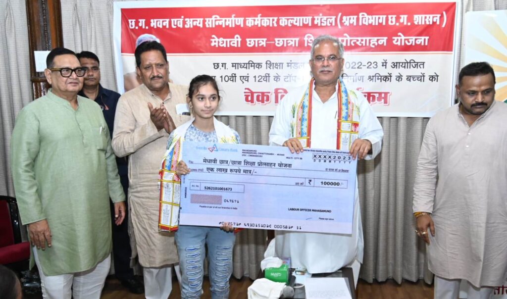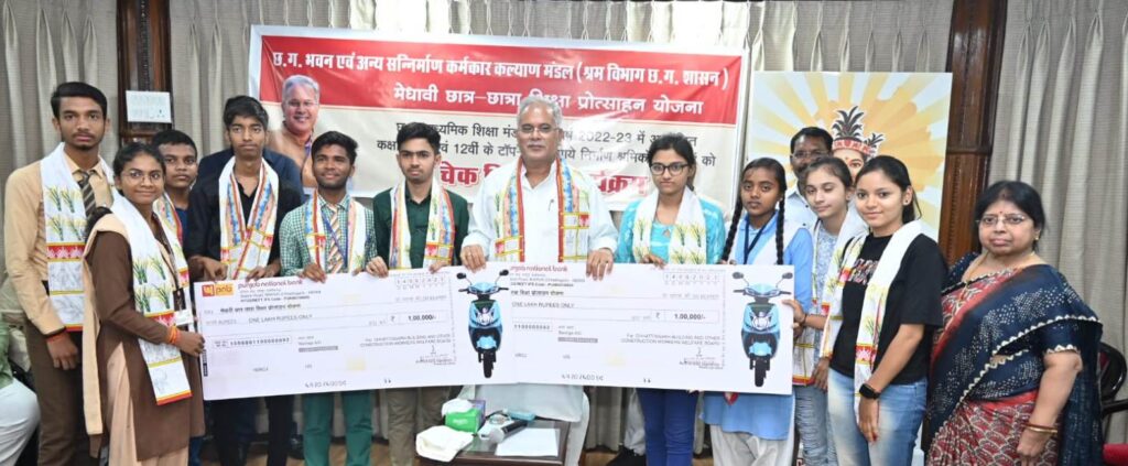 छत्तीसगढ़ भवन एवं सन्निर्माण कर्मकार कल्याण मंडल की सचिव श्रीमती सविता मिश्रा ने बताया कि छत्तीसगढ़ भवन एवं अन्य सन्निर्माण कर्मकार कल्याण मंडल के पंजीकृत निर्माण श्रमिक हेतु संचालित ‘मेधावी छात्र-छात्रा शिक्षा प्रोत्साहन योजना’ के तहत छत्तीसगढ़ माध्यमिक शिक्षा मंडल द्वारा आयोजित 10वीं एवं 12वीं की कक्षा में टॉप-10 में आने पर श्रमिक के बच्चों को प्रोत्साहन राशि के तहत एक लाख रूपए की राशि प्रदान की जाती है। इस योजना के तहत 2021 में टॉप-10 में जगह बनाने वाले 10वीं एवं 12वीं के तीन छात्र-छात्राएं एवं 2022 में भी तीन छात्र-छात्राएं एवं इस वर्ष 2023 में 10 छात्र-छात्राओं को प्रोत्साहन राशि के तौर पर एक लाख रूपए प्रदान किया गया है।