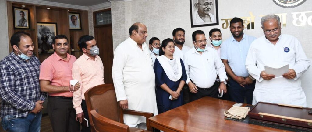 रायपुर/कोरबा (खटपट न्यूज)। राजस्व मंत्री जय सिंह अग्रवाल की सकारात्मक पहल व उपस्थिति में कनिष्ठ प्रशासनिक सेवा संघ के प्रांताध्यक्ष कृष्ण कुमार लहरे की अध्यक्षता में प्रान्त कार्यकारिणी ने मुख्यमंत्री भूपेश बघेल से सौजन्य मुलाकात कर उन्हें तहसीलदारों की मांग सहित विभिन्न कठिनाईयों से अवगत कराया, जिस पर मुख्यमंत्री ने जून के अंतिम सप्ताह में तहसीलदार नायब तहसीलदारों के महाधिवेशन में शामिल होने सहमति दी।