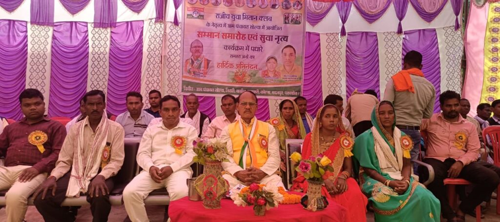 कोरबा(खटपट न्यूज़)। रामपुर विधानसभा क्षेत्रांतर्गत ग्राम पंचायत सोलवां में राजीव युवा मितान क्लब के विधानसभा समन्वयक मानसिंह राठिया का सम्मान समारोह के अवसर पर सुआ नृत्य प्रतियोगिता का आयोजन किया गया। राजीव युवा मितान क्लब सोलवां, पसरखेत, मदनपुर, कोलगा, बासीन, गिरारी, फुलसरी के तत्वावधान में आयोजित प्रतियोगिता के मुख्य अतिथि पूर्व विधायक श्यामलाल कंवर, कार्यक्रम अध्यक्ष सरपंच श्रीमती अनुराधा राठिया के द्वारा पूजा-अर्चना कर स्पर्धा का शुभारंभ कराया गया। सभी पंचायत से सुआ नृत्य मंडलियों ने भाग लिया। एक से बढ़कर एक प्रस्तुतियों से उपस्थित ग्रामवासी मंत्रमुग्ध होते रहे। उपस्थित अतिथिगण भी अपने आपको झूमने से नहीं रोक पाए। प्रतियोगिता का प्रथम पुरस्कार पसरखेत, द्वितीय पुरस्कार कोलगा व तृतीय पुरस्कार मदनपुर की टीम को मिला। सांत्वना पुरस्कार ग्राम सोलवां,फुलसरी व गिरारी की नृत्य मंडली को प्रदान किया गया। पूर्व विधायक श्याम लाल कंवर व अतिथियों ने पुरस्कार वितरण कर सफल आयोजन के लिए बधाई दी।