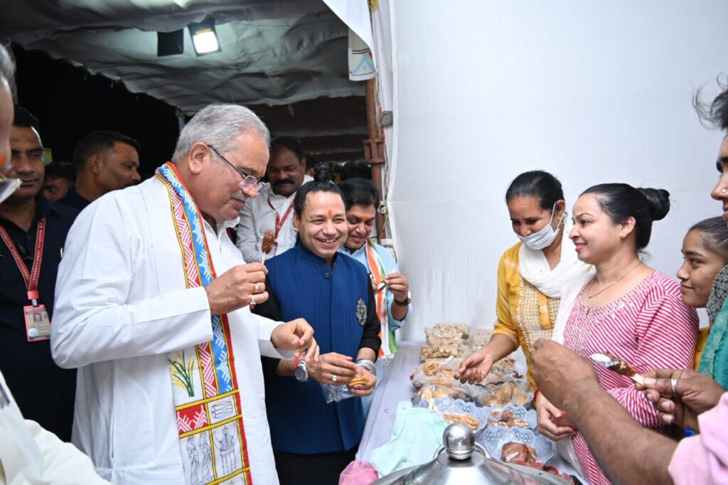 माता कौशल्या महोत्सव के समापन कार्यक्रम में शामिल होने चंदखुरी पहुंचे मुख्यमंत्री श्री भूपेश बघेल ने महिला सशक्तिकरण प्रदर्शनी का अवलोकन भी किया। इस मौके पर उन्होंने गायक श्री कैलाश खेर के साथ विशिष्ट छत्तीसगढ़ी इमली लाटा और व्यंजनों का स्वाद भी लिया। मुख्यमंत्री ने इमली लाटा के स्वाद की प्रशंसा करते हुए कहा कि बहुत अच्छा टेस्ट है। बचपन की दिनों की याद आ गई। उन्होंने श्री खेर को बताया कि हमारे यहां इमली लाटा, बेर के पाउडर से बनी रोटी और गटागट विशेष लोकप्रिय हैं। इस मौके पर उन्होंने छत्तीसगढ़ी हैंडलूम के स्टॉल में कारीगरों से बातचीत की। कारीगरों ने बताया कि उनकी पहल से हस्तकरघा को बढ़ावा देने की योजनाओं की वजह से उनका व्यवसाय अच्छा हुआ है। देश भर में लोग छत्तीसगढ़ी परिधानों के बारे में उत्सुक हैं और हमारी अच्छी खासी बिक्री हो रही है। इन कलाकारों ने मुख्यमंत्री को स्नेह से गमछा भी भेंट किया।