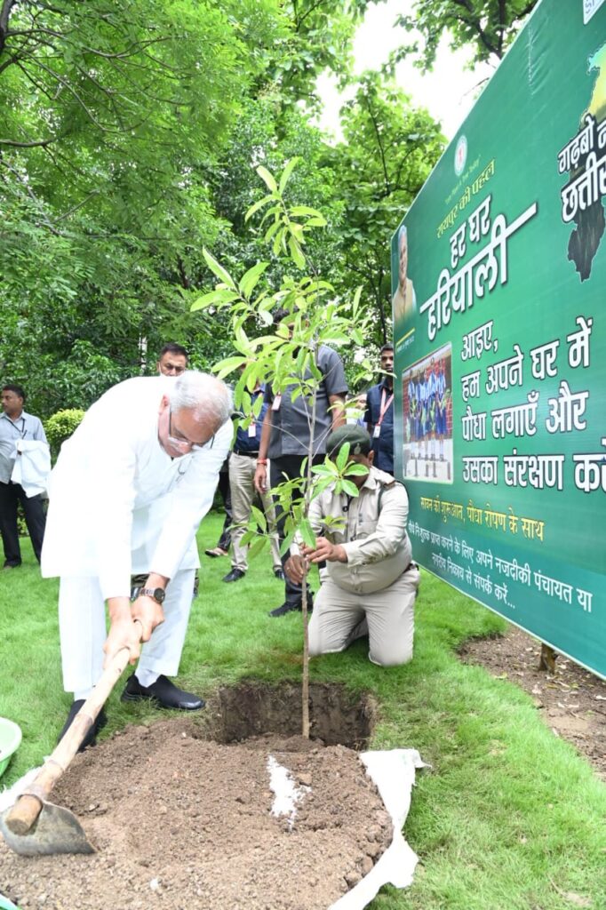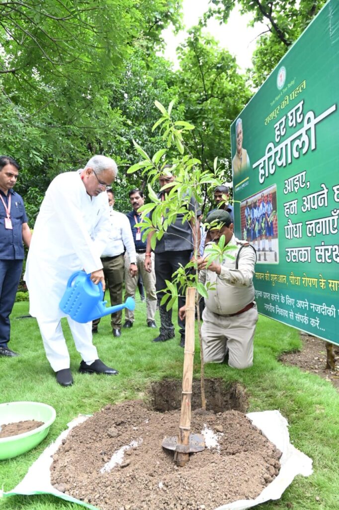 रायपुर (खटपट न्यूज)। मुख्यमंत्री श्री भूपेश बघेल ने आज प्रथम सावन सोमवार को यहां अपने निवास में ‘हर घर हरियाली’ अभियान के तहत रुद्राक्ष का पौधा लगाया। इस अवसर पर संस्कृति मंत्री श्री अमरजीत भगत भी उपस्थित थे