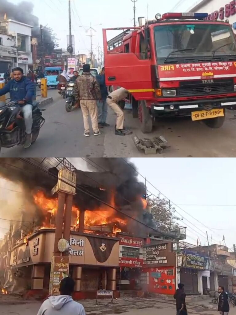 कोरबा (खटपट न्यूज़)। सोमवार की सुबह पावर हाउस रोड स्थित एस एस प्लाजा में संचालित पद्मिनी ज्वेलर्स दुकान के ऊपरी तल की दुकान में आल सुबह आग लग गई। आग इतनी भयंकर थी कि देखते देखते आस पास तेजी से फैलने लगी ।बगल की दुकानों तक आग ना पहुंच सके, इसके लिए लोगों ने समान हटाना शुरू किया है।