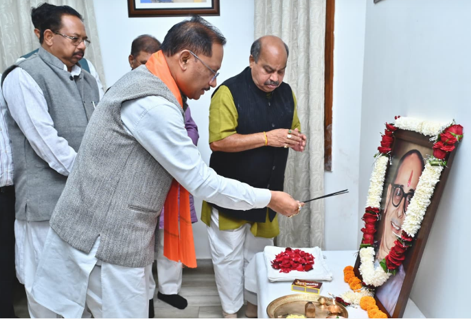 रायपुर। मुख्यमंत्री विष्णुदेव साय ने आज राजधानी रायपुर स्थित मुख्यमंत्री निवास कार्यालय में प्रख्यात जननायक कुशाभाऊ ठाकरे जी की पुण्यतिथि पर उनके छायाचित्र पर पुष्प अर्पित कर भावपूर्ण श्रद्धांजलि अर्पित की। इस अवसर पर सांसद संतोष पाण्डेय, विधायक प्रबोध मिंज, विधायक पुरन्दर मिश्रा सहित अनेक जनप्रतिनिधि उपस्थित थे।