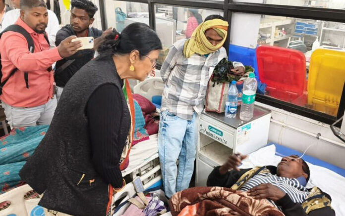 कोरबा (खटपट न्यूज)। जिले के कोरबी में रकबा सत्यापन और टोकन न मिलने से धान बेचने में परेशानी होने से एक किसान सुमेर सिंह गोंड़ ने जान देने की कोशिश की। कीटनाशक का सेवन करने से स्थिति बिगडऩे पर उसे आनन-फानन में जिला अस्पताल लाया गया। यहां उसका उपचार जारी है। घटना की जानकारी होते ही कोरबा प्रवास पर चल रहीं सांसद श्रीमती ज्योत्सना चरणदास महंत ने अस्पताल पहुंचकर घटना की जानकारी लेते हुए किसान का हाल जाना।