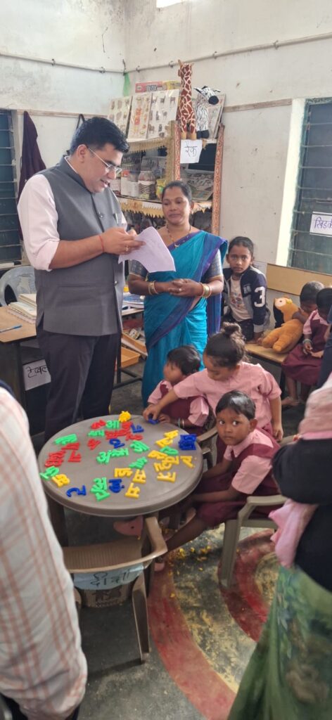 आमाखोखरा के आंगनबाड़ी केंद्र का निरीक्षण, बच्चों से संवाद, दी शाबाशी