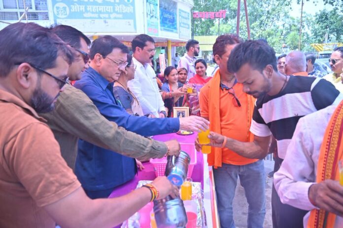 कोरबा। घंटाघर चौक स्थित तुलसी कलेक्शन के सामने शीतल शरबत वितरण का नगर विधायक एवं कैबिनेट मंत्री श्री लखन लाल देवांगन के तत्वाधान में शुक्रवार को शुभारंभ किया गया। प्रति वर्ष की तरह कैबिनेट मंत्री द्वारा गर्मी में आम राहगीरों के लिए शीतल शरबत वितरण किया जाता है, शुक्रवार को इसके शुभारंभ अवसर पर मंत्री श्री देवांगन के साथ-साथ कटघोरा के विधायक श्री प्रेमचंद पटेल, महापौर श्रींमती संजू देवी राजपूत, भाजपा जिला अध्यक्ष श्री गोपाल मोदी, रायपुर संभाग सह प्रभारी डॉ राजीव सिंह भी विशेष रूप से उपस्थित रहे। इस अवसर पर विधिवत पूजन कर शरबत वितरण केंद्र का शुभारंभ कर राहगीरों को मंत्री श्री देवांगन एवं अन्य विशिष्ट जनों ने शरबत का वितरण किया।