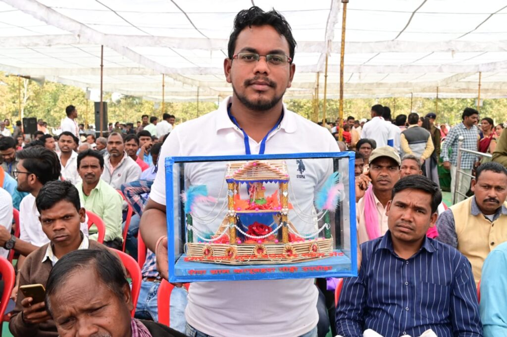 युवा मितान क्लब पिपरिया के छत्र राम पटेल ने मुख्यमंत्री को वेस्ट मैटेरियल से बनी नाव की कलाकृति भेंट की। इस नाव को पेपर बोर्ड, खराब धागा, मुर्गा पंख, पुराने फूल, टूटे हुए खिलौने, साड़ी बार्डर की चेन,आइसक्रीम चम्मच, आइना, अभ्रक, मोती तथा गोंद से बनाया गया था। उपहार और भेंट पाकर मुख्यमंत्री काफी अभिभूत हुए और उन्होंने इस कलाकारी को सराहा भी।
