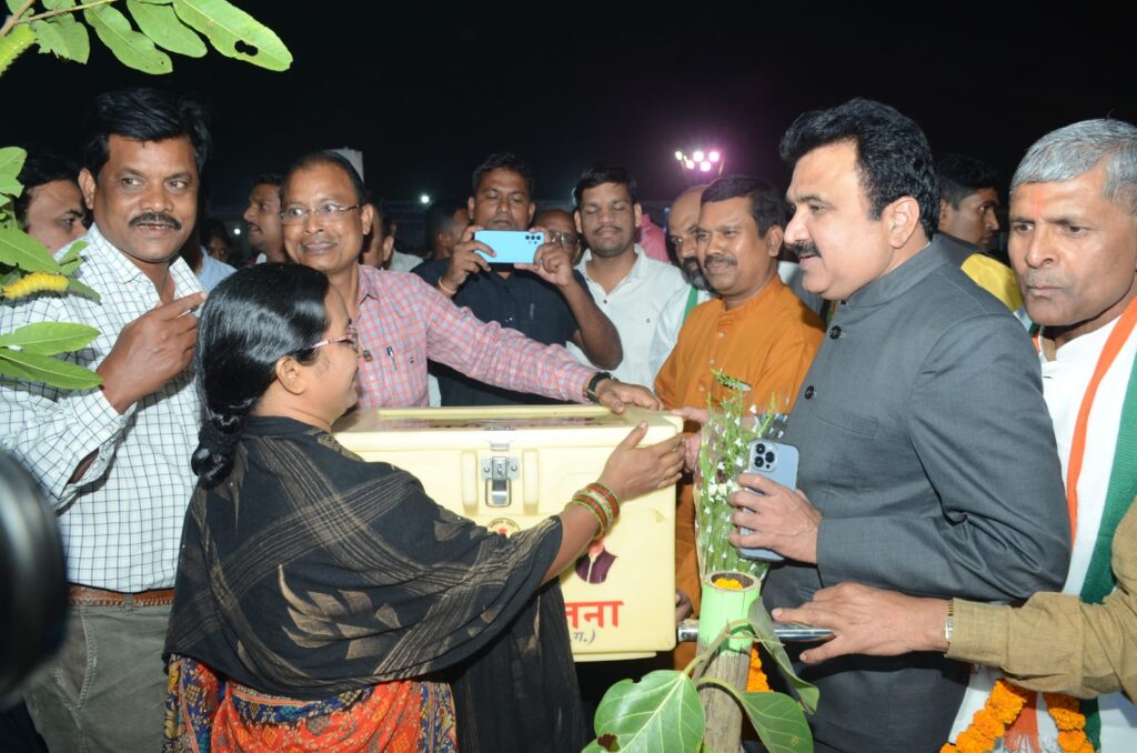 किसान श्री लच्छीराम को मिला ट्रैक्टर, हितग्राहियों को किया गया सामग्री वितरण – एक दिवसीय राज्योत्सव कार्यक्रम के दौरान विभिन्न शासकीय विभागों द्वारा हितग्राहियों को हितग्राही मूलक कार्यों के लिए विभिन्न सामानों का वितरण किया गया। इस दौरान किसान श्री लच्छीराम सारथी को कृषि विभाग द्वारा ट्रैक्टर का वितरण किया गया। किसान को सात लाख 66 हजार रूपए के ट्रैक्टर में शासन की ओर से तीन लाख 83 हजार रूपए का अनुदान दिया गया है। विभागों द्वारा हितग्राहियों को सिलाई मशीन, राज मिस्त्री किट, वन अधिकार पट्टा, दवाई-बीज, सरसों मिनी किट एवं मछली पालन के लिए आईस बॉक्स, आवास आबंटन, चेक राशि, महाजाल आदि का वितरण किया गया। नगर निगम कोरबा द्वारा प्रधानमंत्री आवास योजना और मोर मकान मोर चिन्हारी अंतर्गत हितग्राहियों को आवास आबंटन, श्रम विभाग द्वारा हितग्राहियों को सिलाई मशीन, राज मिस्त्री किट एवं हितग्राहियों को राशि का वितरण किया गया। इसी प्रकार महिला एवं बाल विकास विभाग द्वारा हितग्राहियों को चेक राशि का वितरण किया गया।