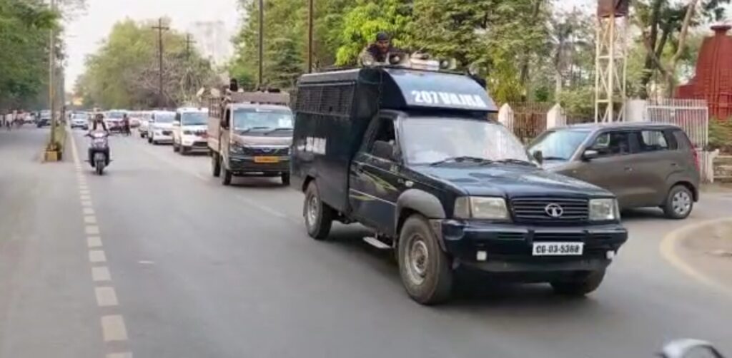 KORBA:हुड़दंगियों व गुंडे-बदमाशों पर धमक बढ़ाने पुलिस का फ्लैग मार्च
