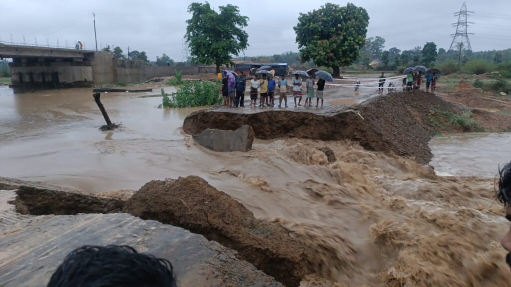 कोरबा(खटपट न्यूज़)। पिछले दिनों से हो रही तेज बारिश के कारण जिले के ग्रामीण अंचल की एक सड़क बह गई है। सड़क का एक हिस्सा बह जाने के कारण इस पर आधारित लगभग डेढ़ दर्जन गांवों का संपर्क आवागमन के मामले में टूट गया है।