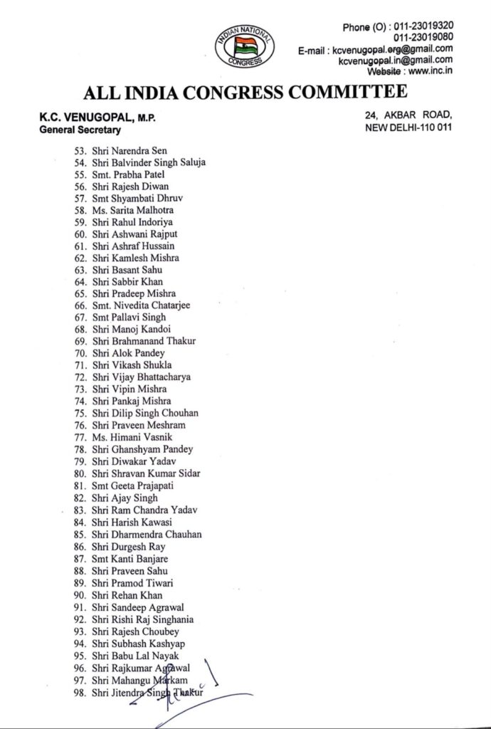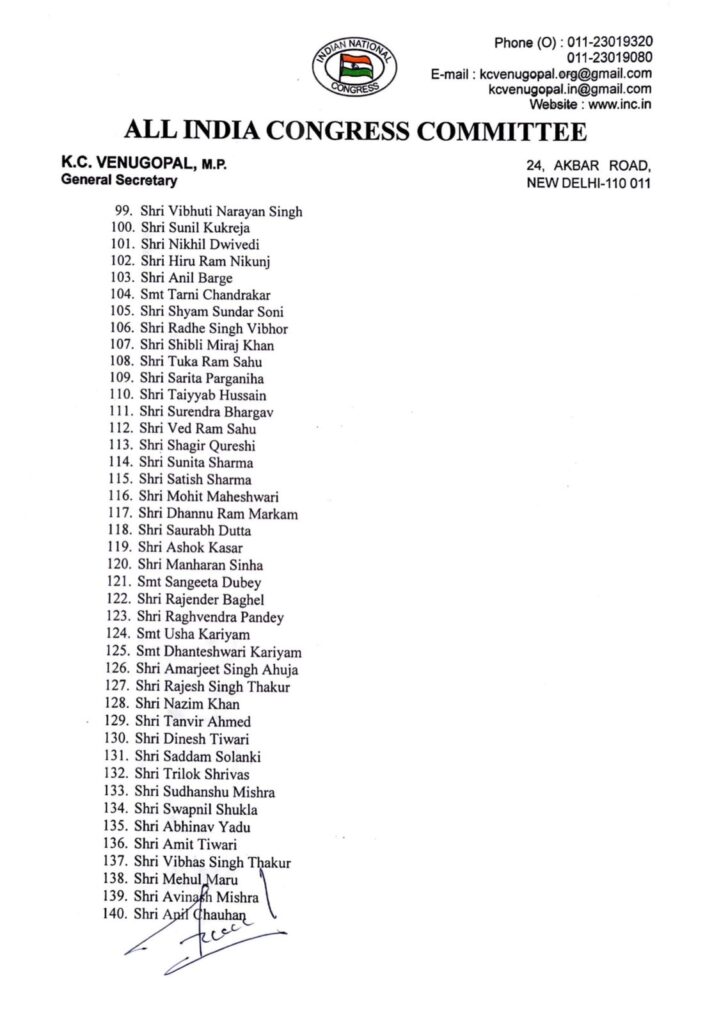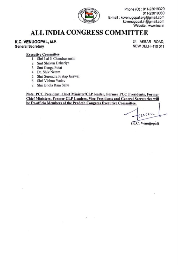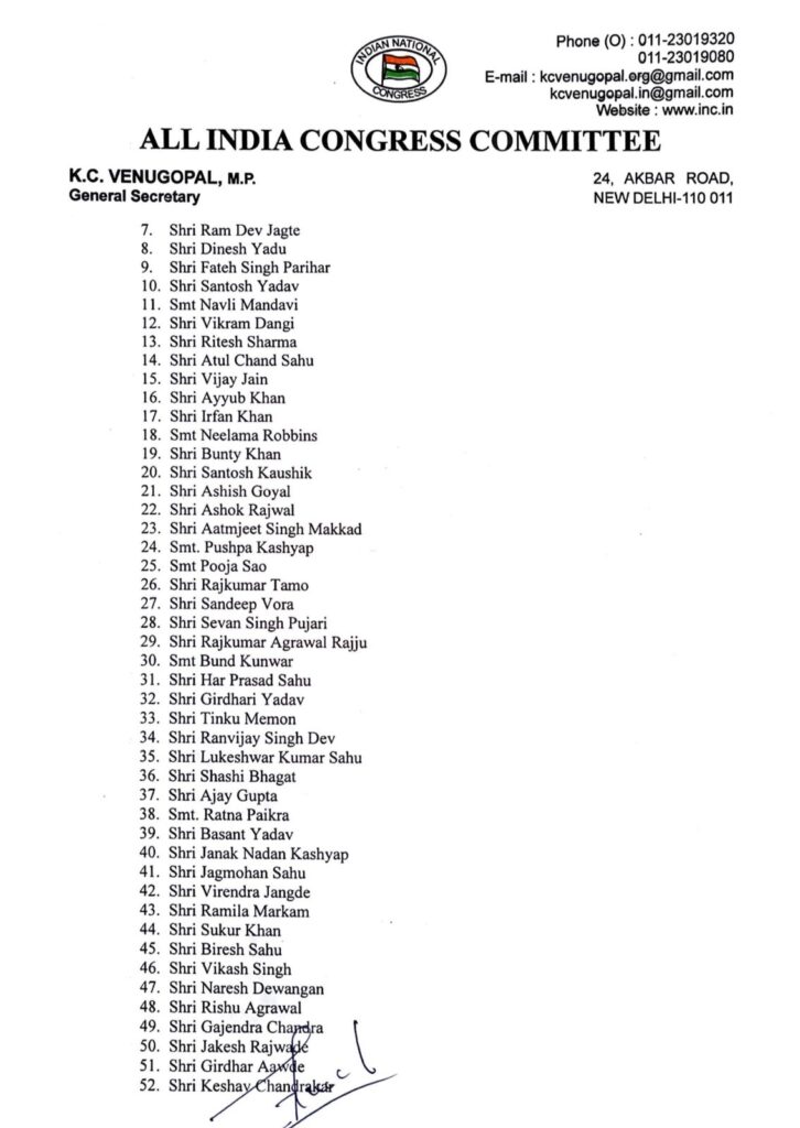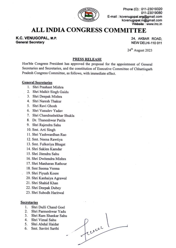 रायपुर/कोरबा(खटपट न्यूज़)। अखिल भारतीय कांग्रेस कमेटी के महासचिव केसी वेणुगोपाल के द्वारा कांग्रेस अध्यक्ष के अनुमोदन उपरांत छत्तीसगढ़ प्रदेश कांग्रेस कमेटी में महासचिव, सचिव एवं कार्यसमिति सदस्यों की जम्बो सूची जारी की गई है। प्रदेश कांग्रेस कमेटी में की गई नियुक्तियों में कोरबा जिले को भी खास तवज्जो दी गई है। छत्तीसगढ़ राज्य में होने जा रहे विधानसभा चुनाव से ठीक पहले दी गई नियुक्तियों के खास मायने हैं और इन पदाधिकारियों पर एक बड़ी जिम्मेदारी आ गई है।